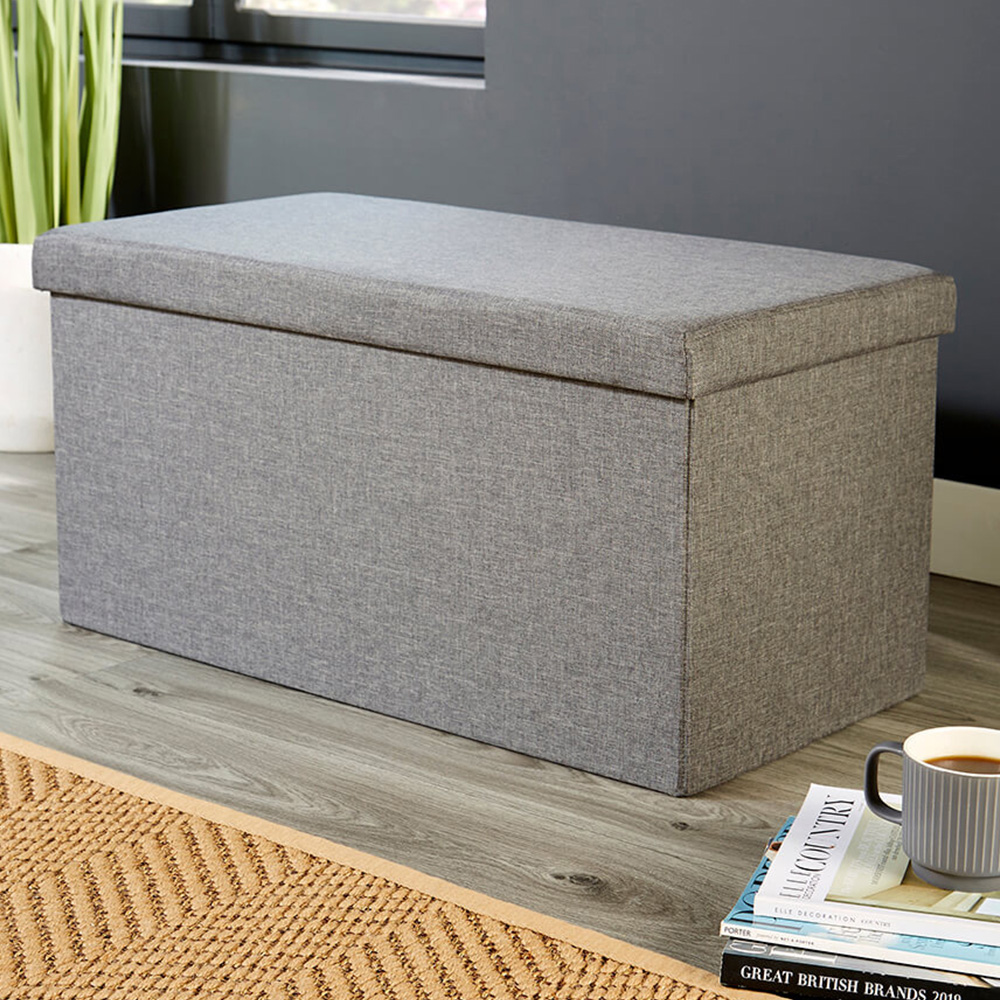 This rectangle foldable ottoman comes in linen material. Featured dark grey, this item is perfect for simple space-saving. With a soft removable lid, the area inside is easily accessed and a great place to store items. Taking up minimal space, the ottoman can be folded up when not in use. A great addition to any home, the ottoman will match many types of interior decor. With a smooth finish, you can keep your rooms clutter-free. The easy to remove lid means that things can be tidied away quickly and kept out of sight. The simple design will suit any home.