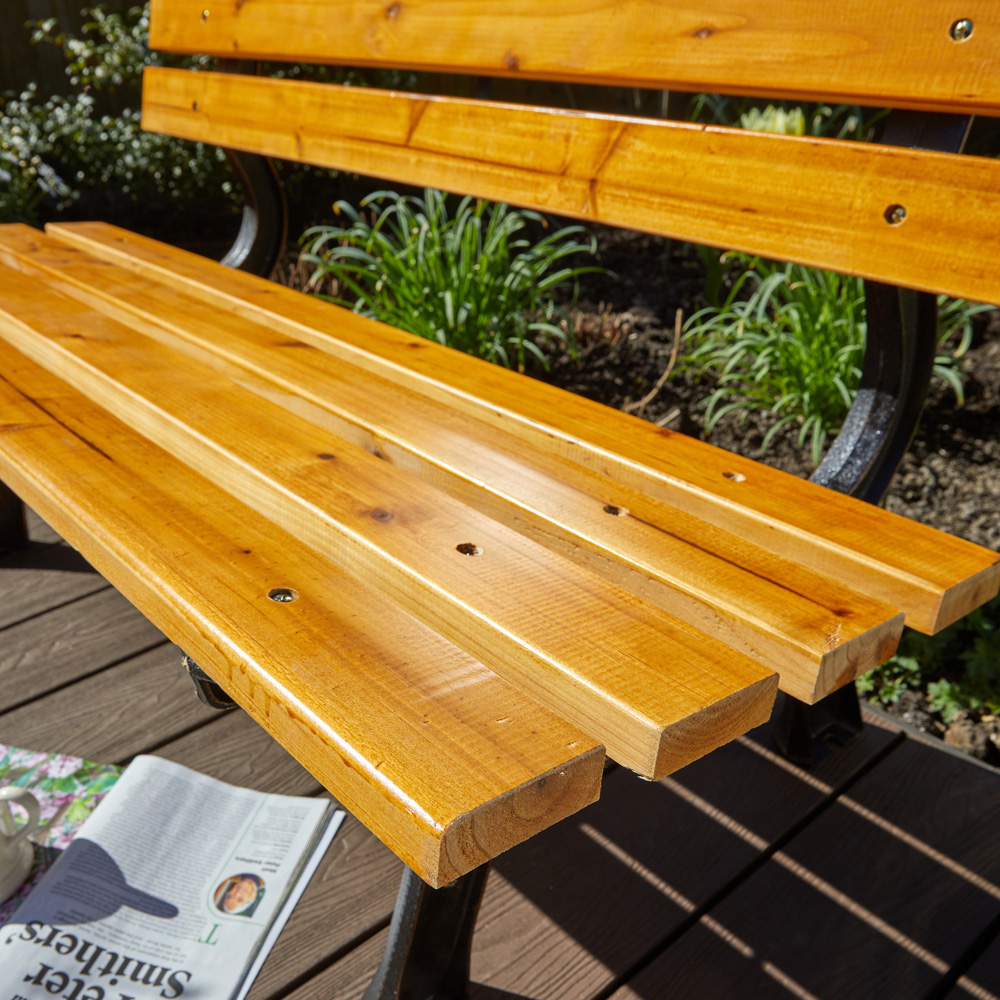 Home Source Clayton 2 Seater Wood and Metal Garden Bench