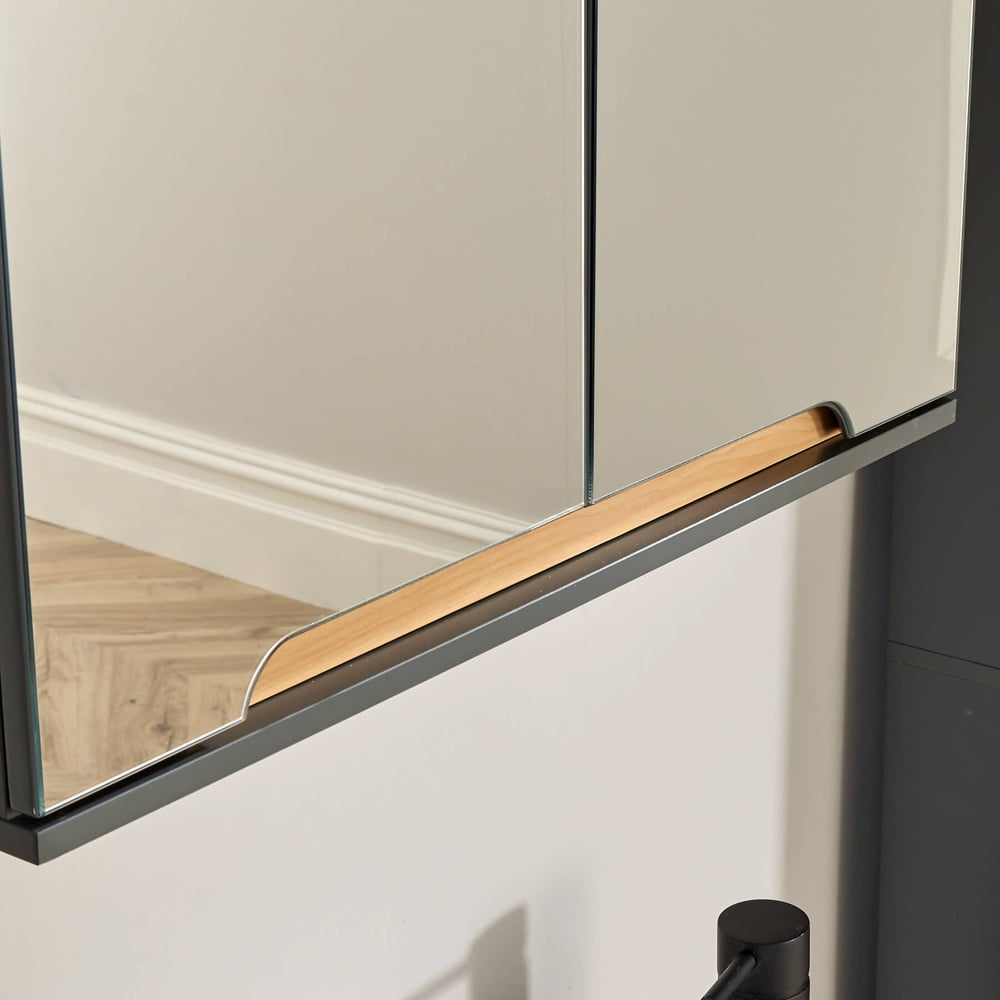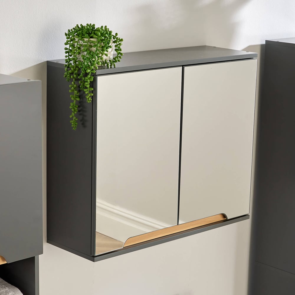 Enhance your bathroom's functionality and style with the Florence Mirrored Hanging Wall Bathroom Storage Cabinet in a soothing grey finish. This wall-mounted unit is crafted from fully painted MDF with elegant pine detailing and features mirrored glass doors with soft ground edges, offering a contemporary touch to any bathroom or cloakroom. The cut-away handles and self-closing hinges provide ease of use, with adjustable features to accommodate uneven walls. The ample storage space behind the doors, complete with a full-width shelf, ensures that all your essentials are neatly organised and accessible. Installation is made simple with a pre-drilled back support rail, and the piece coordinates beautifully with other items for a cohesive look.