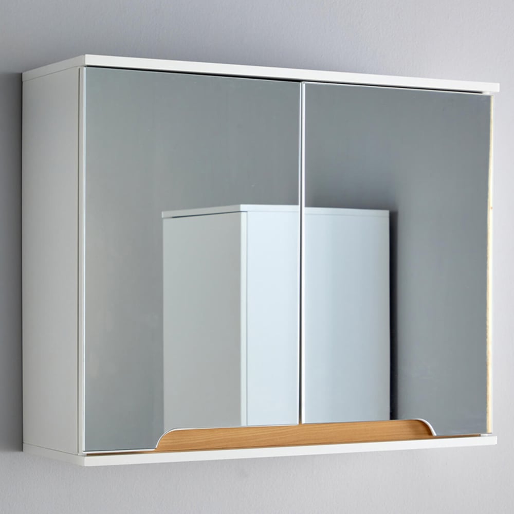 The Florence wall cabinet in white painted finish is an ideal storage piece for your bathroom or cloakroom. Made from fully painted MDF with attractive pine detailing, cut-away handles and mirrored glass doors with soft ground edges. The two doors open and close easily with self-closing hinges, if your wall is a little uneven the door hinges can easily be adjusted too. There is plenty of storage behind the doors with a full-width shelf to maximise the storage space on offer. The unit features a pre-drilled back support rail to make installation easier too. Size = (W) 60cm (D) 20cm (H) 49.4cm.