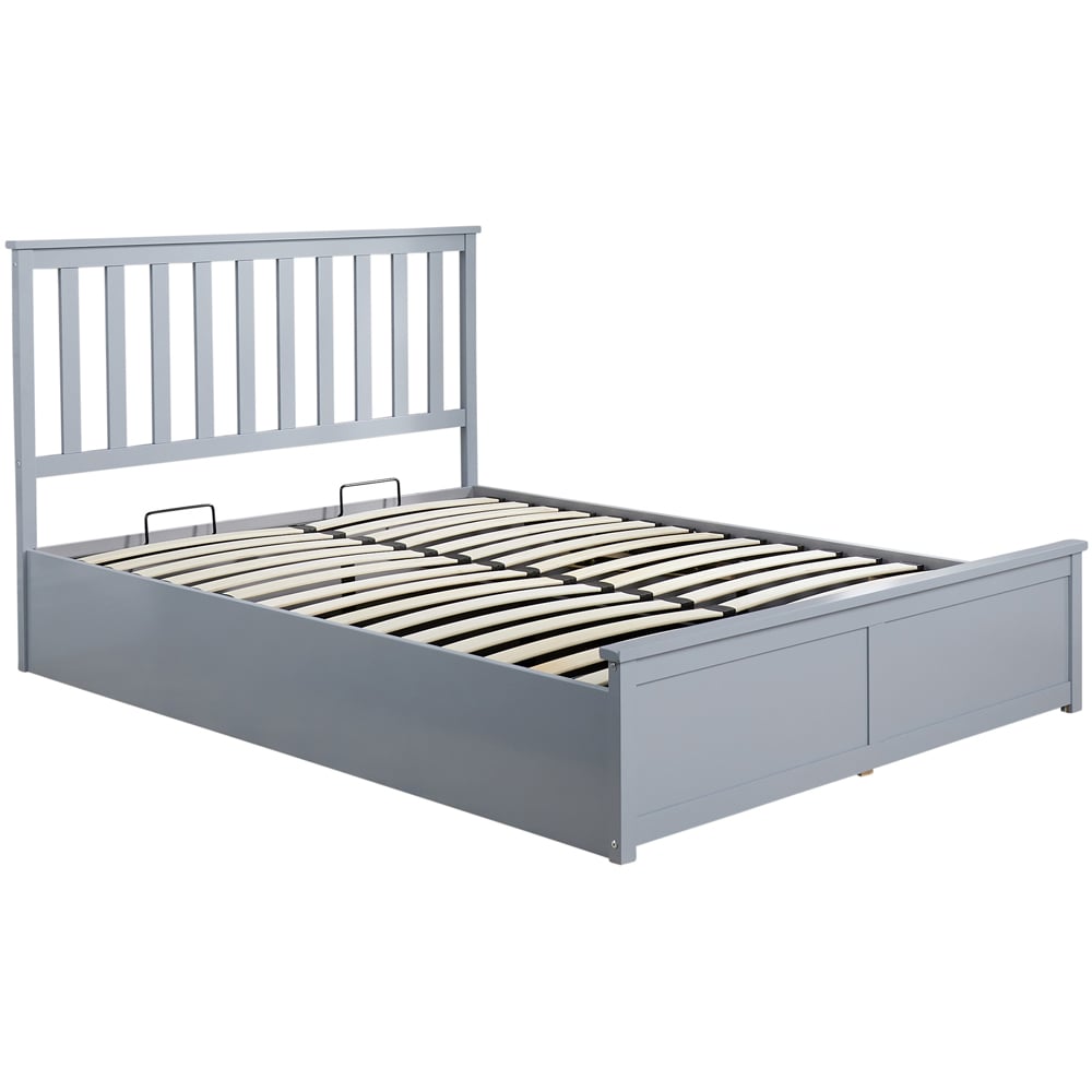 Stylish in look, this stunning but simple double ottoman bed is a useful addition to any bedroom. The bed is crafted from high quality pine wood and is finished in a gorgeous grey matt finish. The bottom slats easily lift up to reveal the storage area, which is useful for keeping belongings in and out of sight.