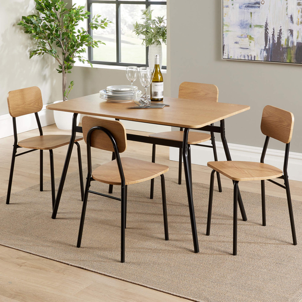 Transform your dining area with the Harlow 4-Seater Dining Set, a perfect blend of style and functionality. This set features a sleek MDF table with a charming oak effect top, complemented by sturdy metal framed chairs, making it an ideal choice for contemporary homes. Designed for comfort and durability, it ensures a delightful dining experience while enhancing your space with its modern aesthetic.