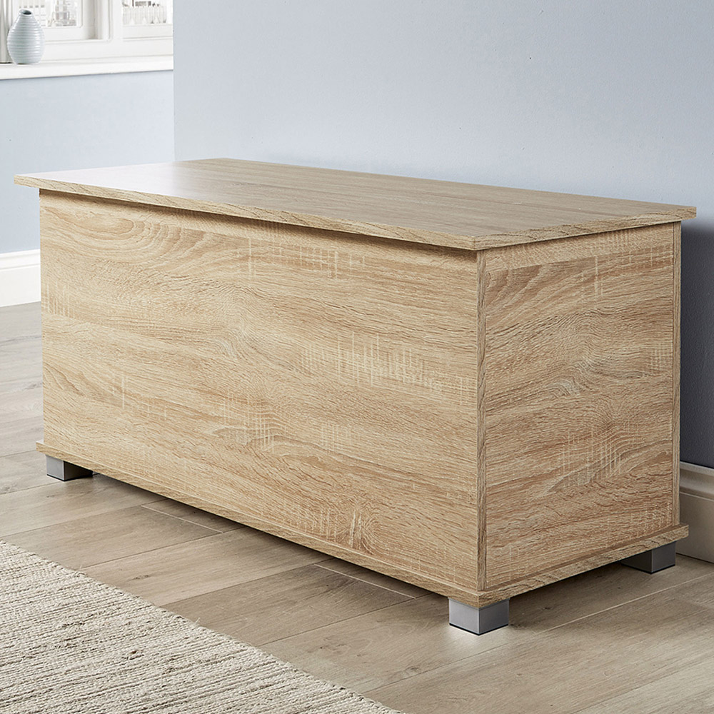 The Malmo furniture range is an entry-level range of affordable and modern furniture. This storage chest is available in white, white oak, grey, black and oak effect. It features a hinged lid with safety catch and would sit equally at home in the living room, bedroom or playroom as a toy chest. The simple design and smooth finish will match a range of interior decors. Perfect for lounges, bedrooms, or hallways, you can keep your house tidy and organised. This is a great addition to any home and is not overbearing.