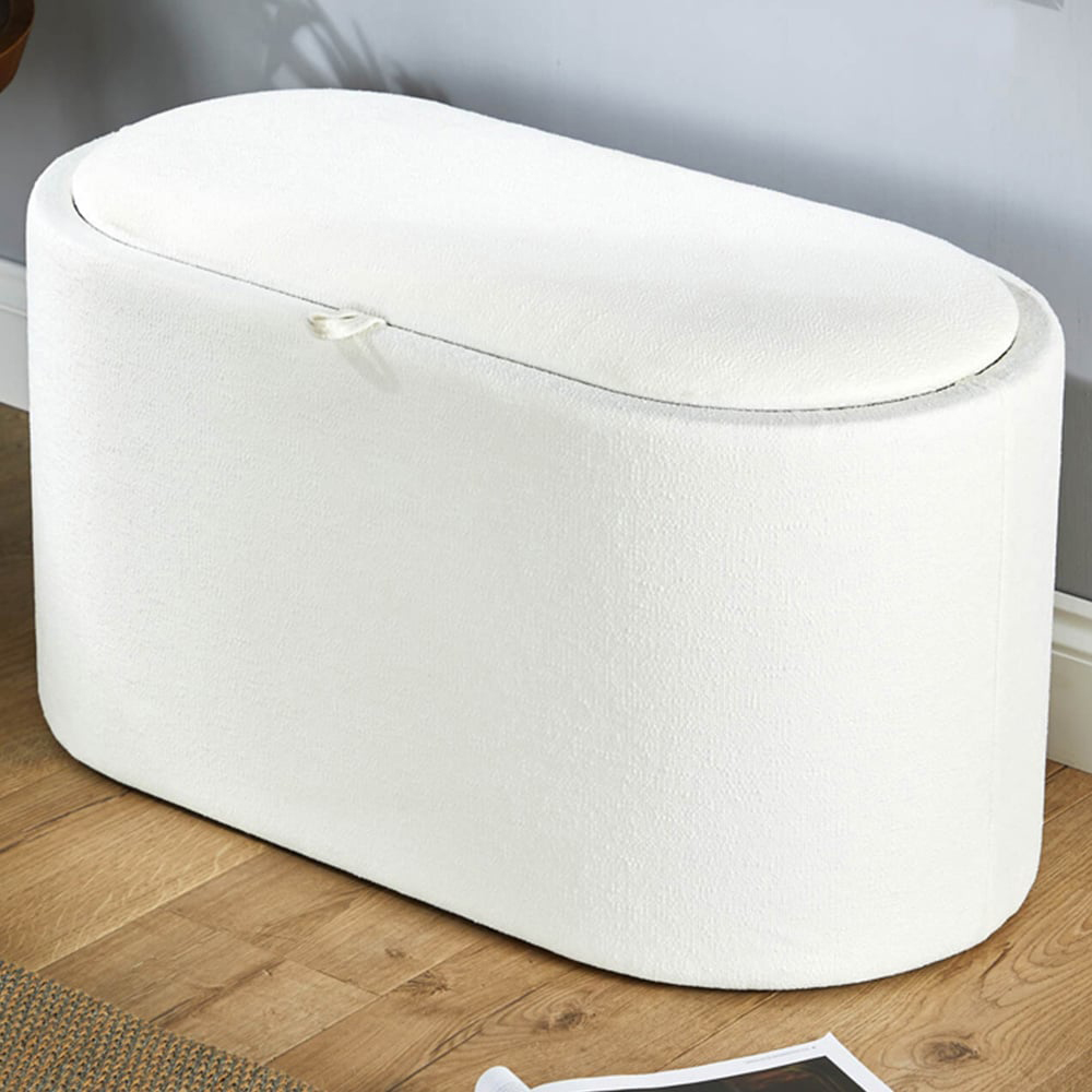 Home Source Merida White Boucle Storage Ottoman