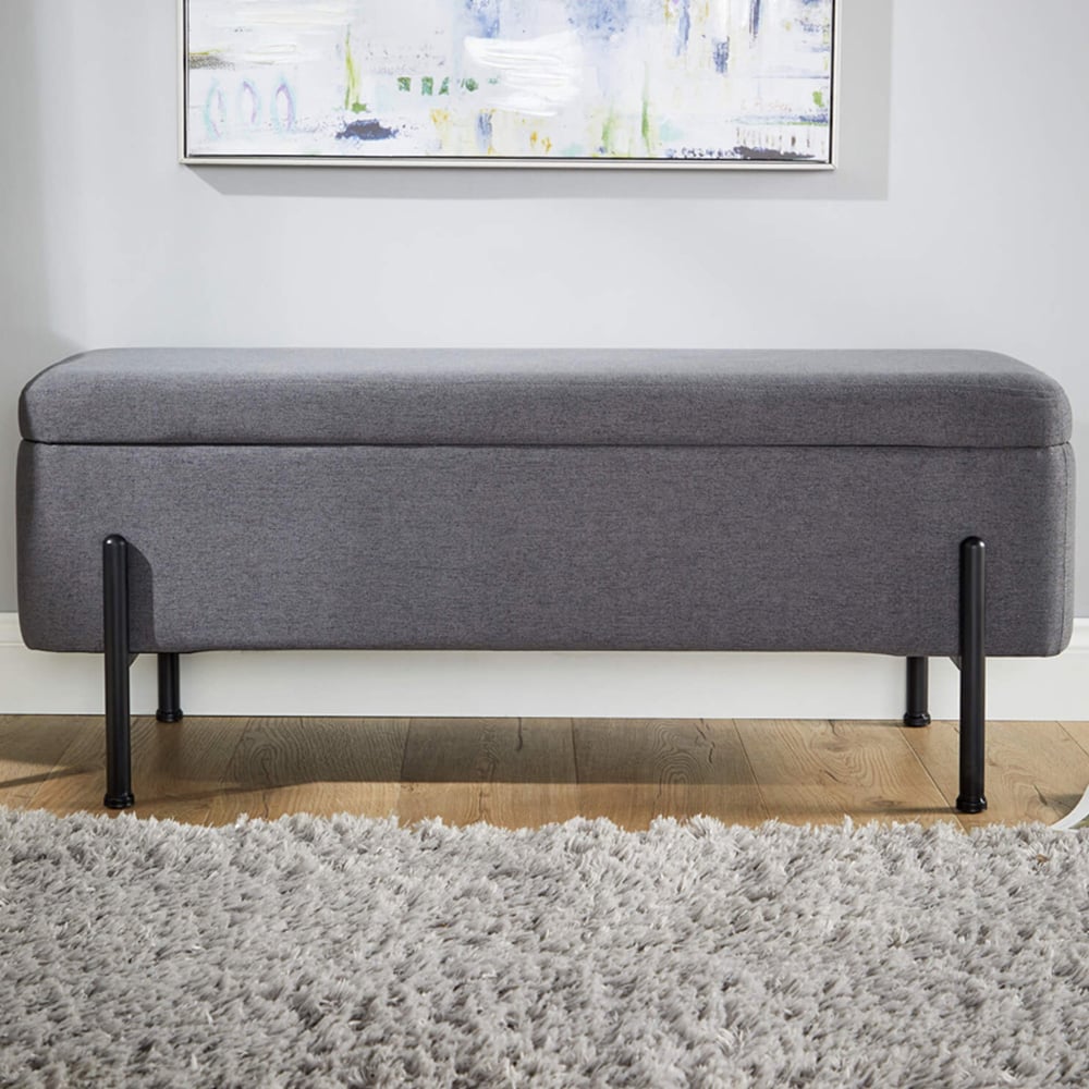 The Oasis Ottoman features sleek black metal legs and is available in a variety of stunning colours including black, grey, light grey and off white. It’s crafted using durable MDF for the frame and has powder coated legs for extra protection. The lift up lid is hinged and has metal stays.