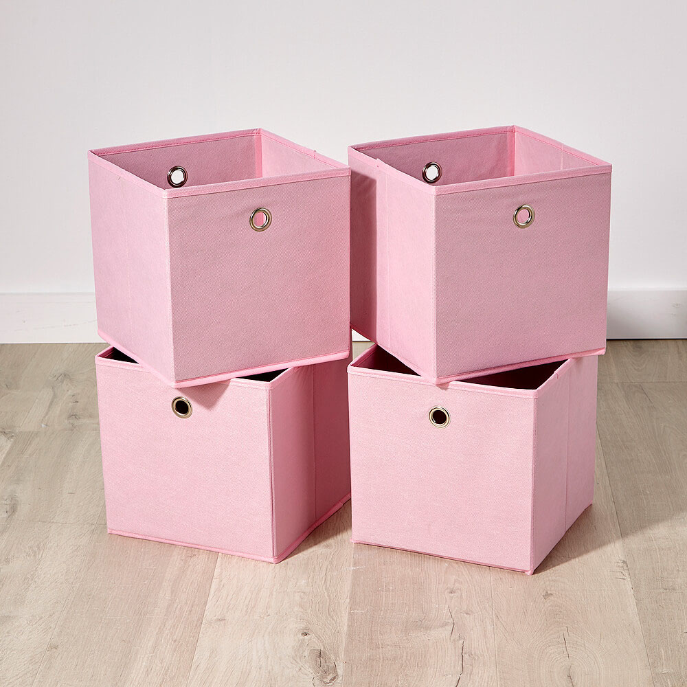 Stylish and strong, our Felt Storage Cube has a pink felt fabric that covers the board. It's the perfect shape to fit into a 2, 4, 6 or 9-cube wooden Storage Unit. Use them by themselves to hold books and magazines, paperwork and files, towels and toiletries, clothes and bedding, toys and teddies. Strong and sturdy it's made from board that's covered in non-woven fabric and features a stylish porthole handle. Handy storage at a great price: that's what you get at the Big Furniture Warehouse. And it's flat-packed, so it costs even less and saves you even more. Size = (W) 27cm (D) 27cm (H) 27cm.