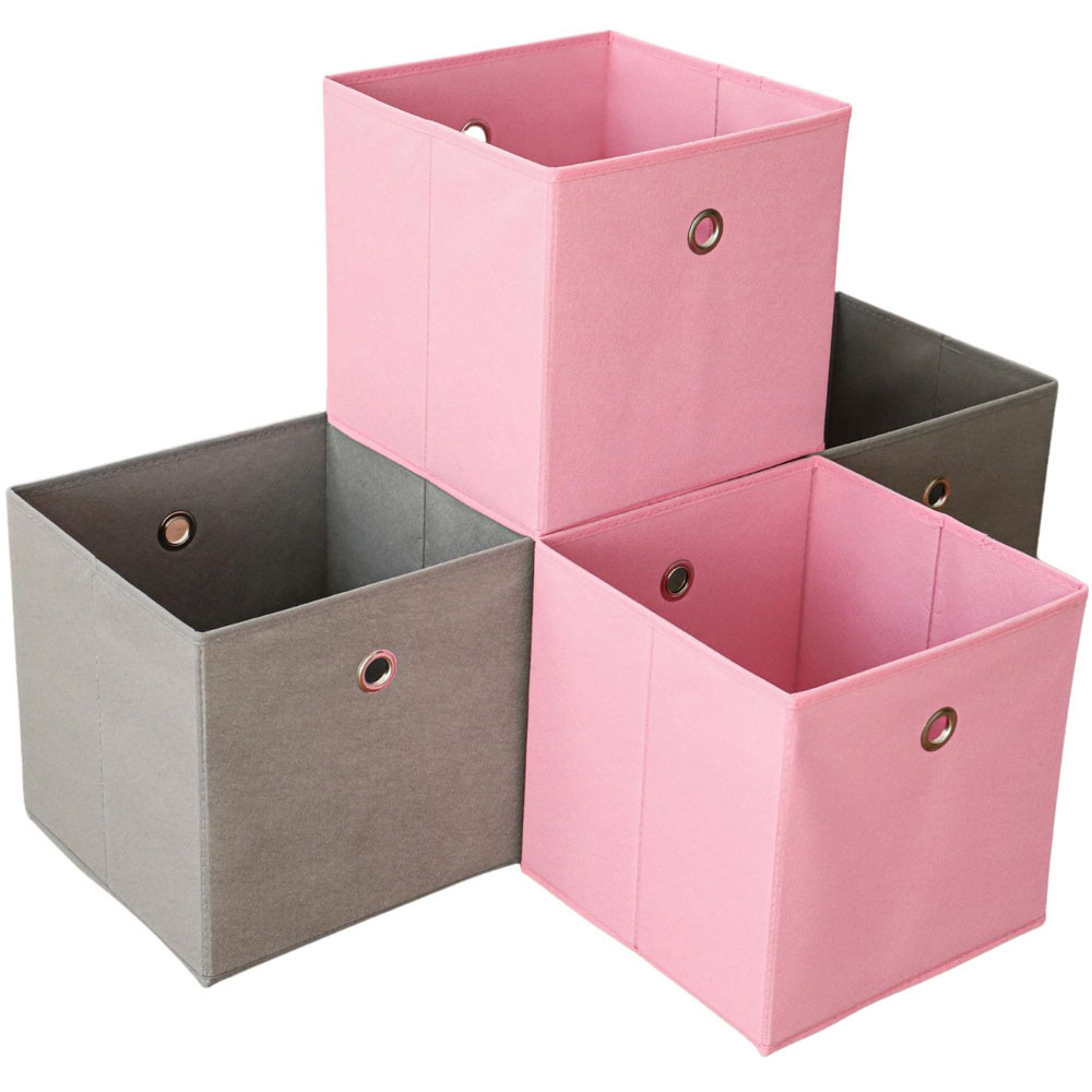 Home Source Pink and Grey Fabric Storage Box 4 Pack