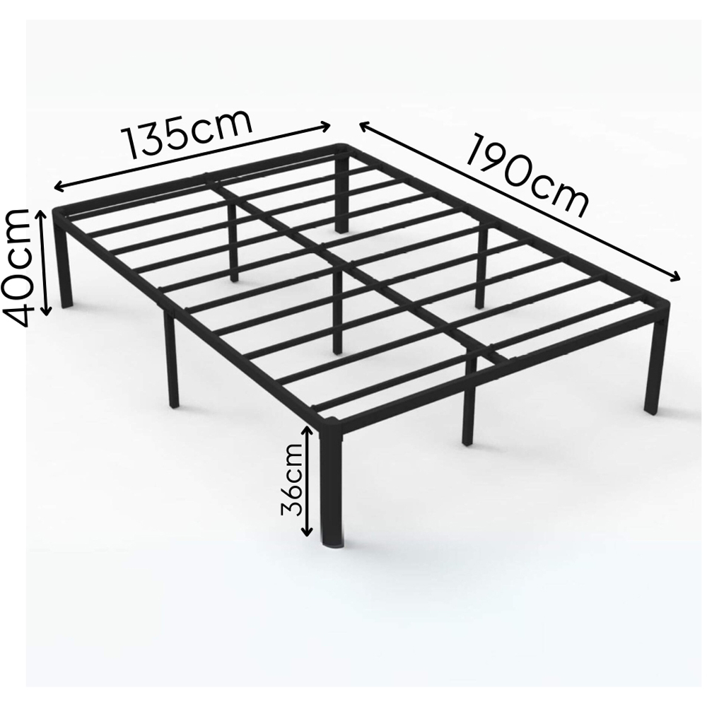 Transform your bedroom into the ultimate comfort zone with the Home Source Florida Double Grey Low-End Wooden Bed. This sturdy steel bed frame is designed for exceptional support and durability. The sleek black metal frame features ten rows of robust metal slats for added mattress stability. Delivered flat-packed for easy home assembly, this bed frame combines strength and style, making it the perfect addition to your bedroom. Dimensions: H40 x W135 x L190cm.