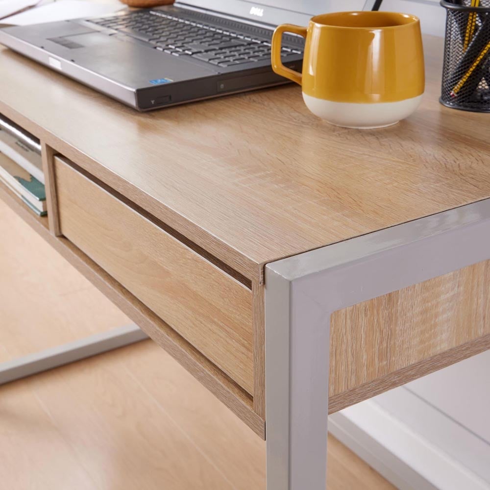 Home Source Toronto 2 Drawer Single Shelf Computer Desk Oak Effect