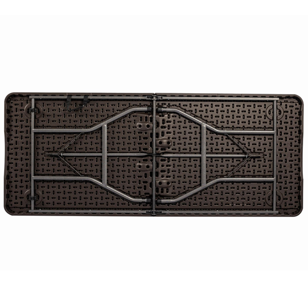 Transform your gatherings and events with the versatile 6FT Folding Indoor Outdoor Trestle Table, the ultimate space solution that doesn't compromise on style. Whether hosting a large dinner, setting up a buffet, or using it in your workshop, this table is essential for providing extra space wherever needed. Crafted with a wood-effect top from high-density polyethylene and supported by sturdy, powder-coated black metal legs, it combines durability with easy maintenance. The angled cross braces add stability, making it perfect for various settings. With its fold-out design, this table is not only lightweight and portable but also easy to store, making it an ideal choice for both indoor and outdoor use.