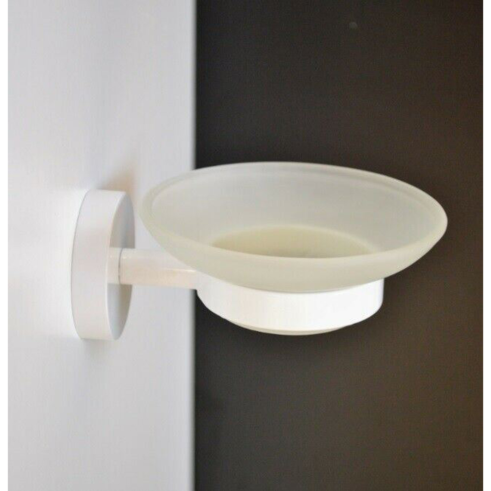 Home Source White Flexi Fix Metal and Glass Pendle Soap Dish Holder