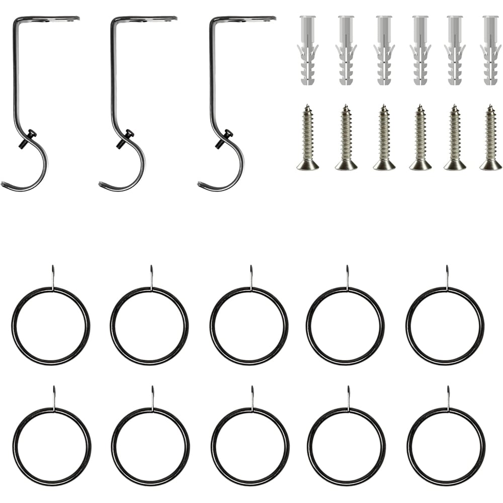 - Comes with brackets, rings, fittings, and finials