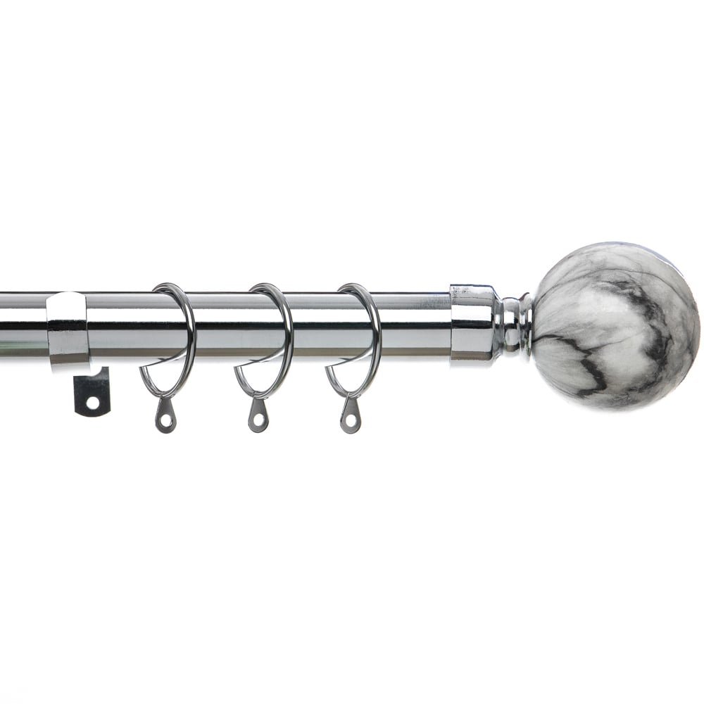 Adjustable – Extendable metal curtain pole set to fit your window. Easily set up the curtain pole to any length between 40cm to 218cm (15” to 86”). Adjustable in 1cm increments for a perfect fit. Full Set - Complete curtain rail includes all your need to hang your curtains. Includes curtain pole, brackets, matching curtain rings, finials, wall fittings and instructions. Decorative – Curtain pole with high shine finish to provide a stylish elegant finish to any room. The large feature finials finish off the sophisticated look. Add a refined finish to your windows & elevate your curtains. Strong Metal – Made from high grade metal that rust and corrosion proof, with a superior plated finish. Thick 25mm pole is suitable for all light to heavyweight curtains, drapes, voiles, fabrics & nets. Easy Fit – Simply screw in curtain pole to achieve your desired length and use a telescopic pole to slide precisely to your desired length. Slot on eyelet brackets with tightening grub screw to hold pole in place.