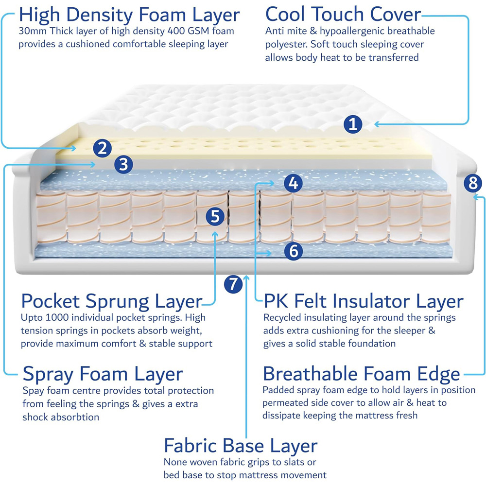 A stylish, modern-style faux leather bed with the addition of all-important storage. Upholstered beautiful black faux leather. Will effortlessly blend into any bedroom interior. This modern ottoman bed lifts easily to reveal a huge amount of storage space. Create extra space in your bedroom. Under-bed storage with easy gas lift access. Padded headboard, base and sides. Low foot end for space saving. Sprung wooden slats for support and strength. The thick 16cm luxury pocket sprung mattress with independent pocket springs adapts to weight. With a breathable cool touch hypoallergenic cover, it is also anti-dust and anti-mite. The high-density foam top sleeping layer has a medium firm rating.