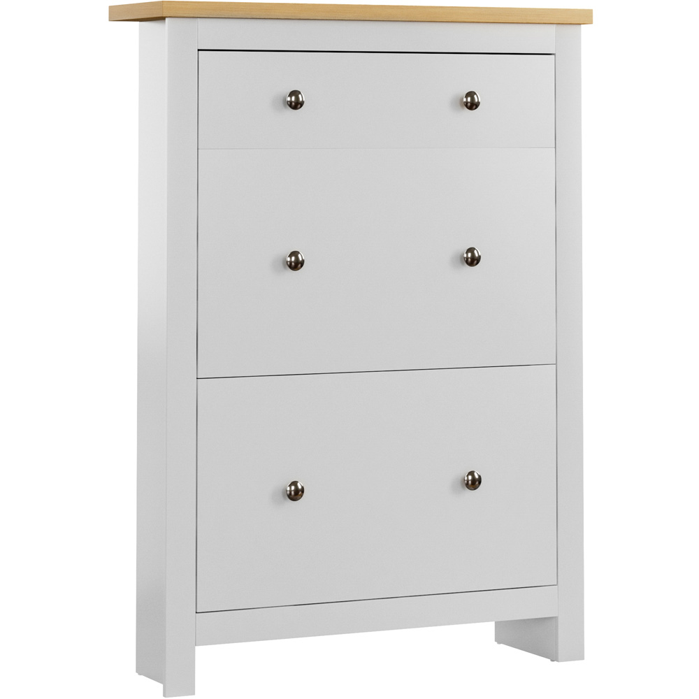 Vida Arlington White and Oak 2-Door 1-Drawer Shoe Cabinet Rack