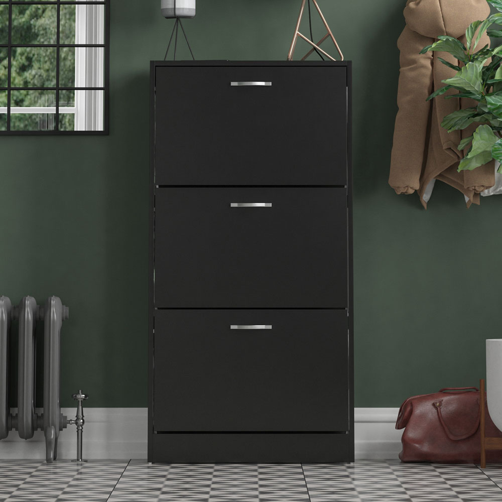 Vida Black 3-Drawer Shoe Cabinet Rack