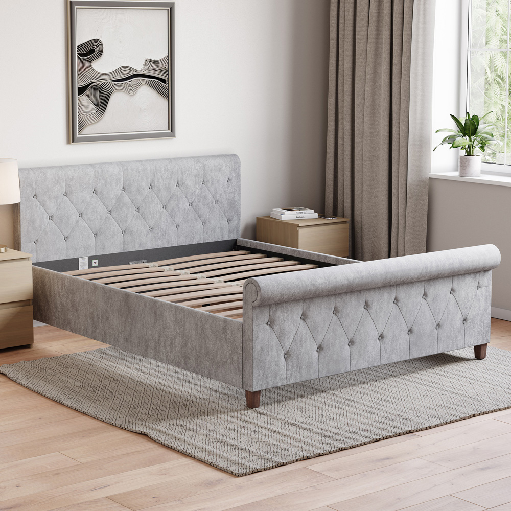 Transform your bedroom into a haven of style and comfort with the Home Vida Vittorio Bed Frame. This elegant bed frame features a luxurious headboard, exuding sophistication and charm. The contemporary design is complemented by sleek, sturdy feet, making it a stunning centrepiece for modern spaces. Designed for both aesthetics and durability, the Vittorio bed frame offers superior comfort with its plush headboard, creating the perfect ambiance for relaxation and restful nights. Built to last, this bed frame effortlessly combines elegance and functionality to elevate your bedroom décor.