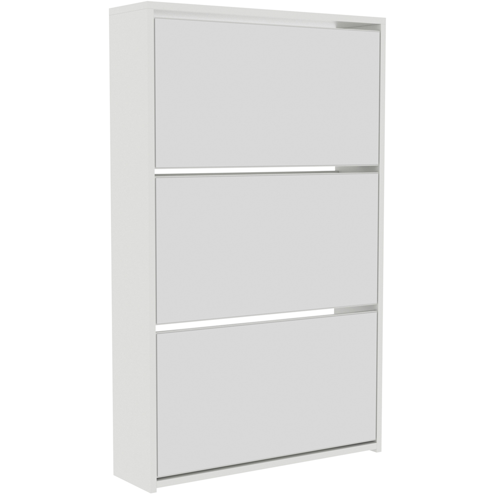Introducing Home Vida Welham White 3-Drawer Mirrored Shoe Cabinet Rack with convenient pull-down drawers, a perfect blend of style and functionality. This cabinet not only provides ample storage for your shoe collection but also adds a touch of glamour to your space. The mirrored front panels create an illusion of spaciousness while reflecting light, making your entryway appear brighter and more inviting. The pull-down drawers ensure easy access and can hold multiple pairs of shoes each. With its sleek design and mirrored accents, this shoe cabinet elevates your home decor effortlessly. Keep your shoes organized in style with this exquisite mirrored shoe cabinet. Dimensions: H100.2 x W62.4 x D16.5cm.