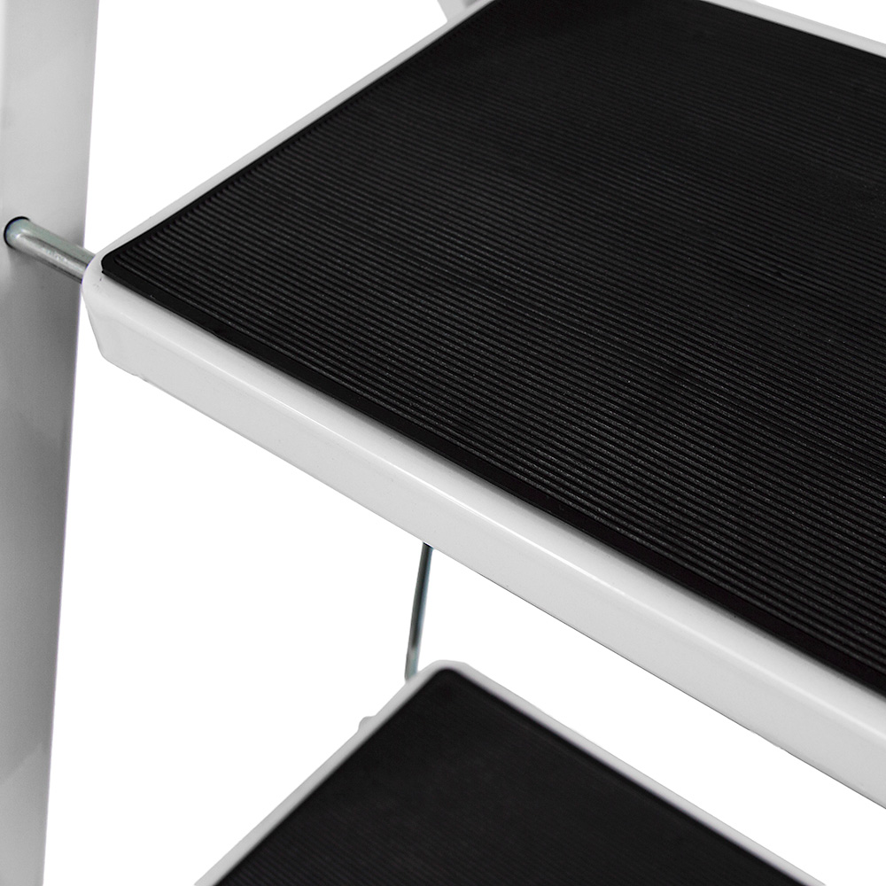 Complete your DIY projects with this Home Vida White 3-Step Ladder. Reliable and versatile, this ladder makes a practical tool for all your elevated tasks. Designed with safety and convenience in mind, it ensures a secure and stable footing with its anti-slip rubber mats on each step, providing peace of mind during use. Featuring a smart folding design, the ladder allows you to easily store it away when not in use, making it an ideal choice for homes or workplaces with limited space. Lightweight and portable, it is easy to carry around, enabling quick access to elevated areas in different locations. Made from high-quality materials, this ladder is built to last and can withstand regular use. Also, the sturdy construction ensures stability, providing you with a reliable and durable tool for various tasks. Versatile and practical, it is perfect for reaching high shelves, changing light fixtures, or completing everyday household chores. Plus, with a three-step design, it offers just the right height for a wide range of activities. Please Note: This item is delivered fully assembled, and ready to use. The actual colour of the product may vary slightly as your screen display setting and lighting with your home environment may differ from our own. Non-slip mats on steps for safety. Weight Limit: 150kg.