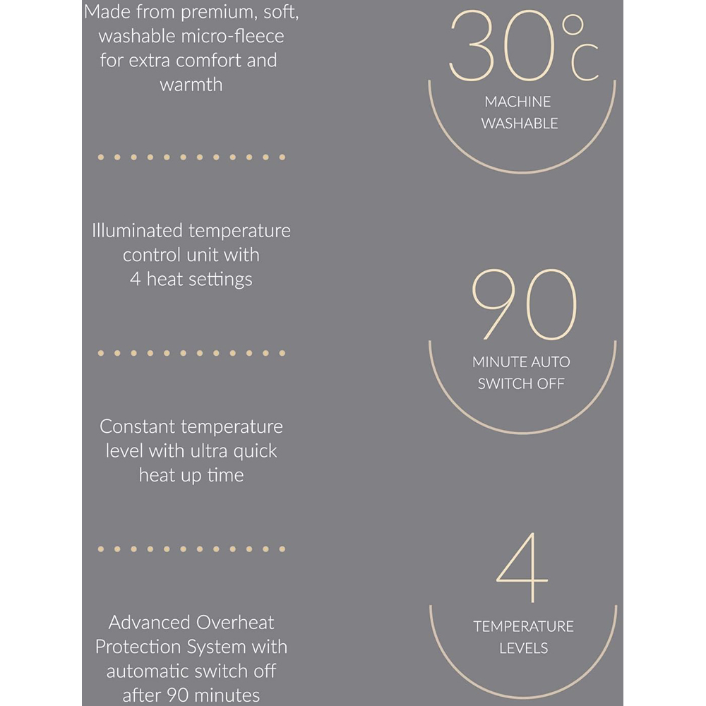This Homefront heat pad is crafted from super soft, premium quality micro flannel fleece to make sure it’s super comfortable and soft. This, combined with an advanced double heating wire, allows the heated pad to reduce pain and discomfort in minutes! The first heat setting heats up to 30 -35°C, the second heat setting heats up to 35-40°C, the third heat setting heats up to 40-45°C and the fourth heat setting heats up to 45-50°C. Thanks to the easy-to-use controller, it’s easy to switch between heat settings. The controller has LED lights to display which heat setting has been chosen, as well as an on and off button for your convenience. If you’re suffering from aching muscles, period pain, aching joints and more, heat has been scientifically proven to help. Known as topical heat therapy, once the heat pad has been placed on the painful area, it increases the blood flow to that area to help ease pain and discomfort. Keep your heat pad fresh and clean by detaching the controller and placing it in your washing machine at 30 degrees! This heat pad has been designed with your safety in mind. With built-in overheat protection, over-current protection and auto cut-off after 90 minutes, you can use the heat pad with complete peace of mind.