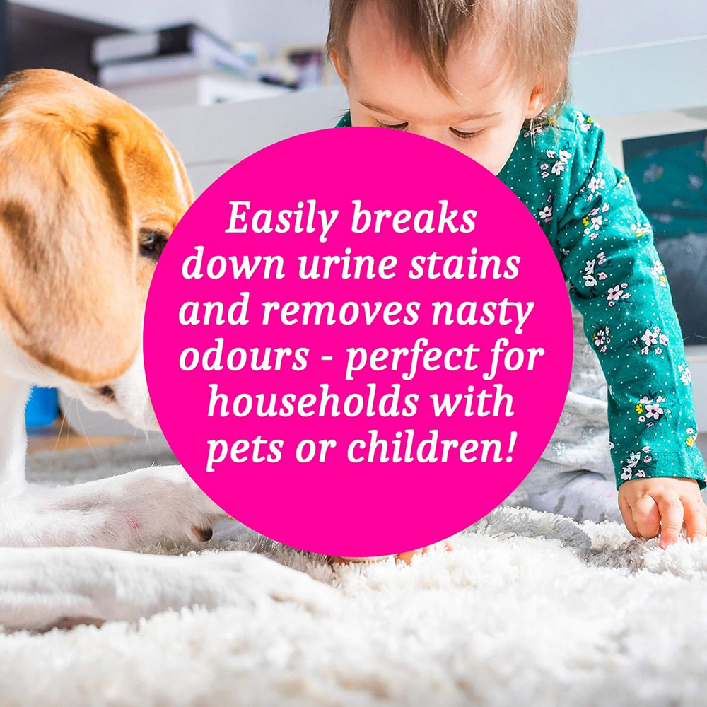 Keep your carpets clean and fresh with the Homefront Floral Carpet Shampoo 5L. It penetrates deep into carpet fibres to eliminate stains and odours, leaving your carpet spotless. Ideal for pet owners, it effortlessly breaks down urine stains and is perfect for high-traffic areas. It can be used with any carpet cleaning machine and on all types of carpets. Its anti-re-soiling agent also helps prevent future stains. The concentrated formula ensures that a little goes a long way, needing only about 30 to 50ml per use. How to Use: Follow the instructions that come with your carpet cleaning machine. Allow to dry and then vacuum for an odour-free, sparkling finish. To use by hand, dilute 30-50 ml of shampoo in 1 litre of water. Brush, spray or sponge on to the stained areas and simply wipe away or vacuum once dry.