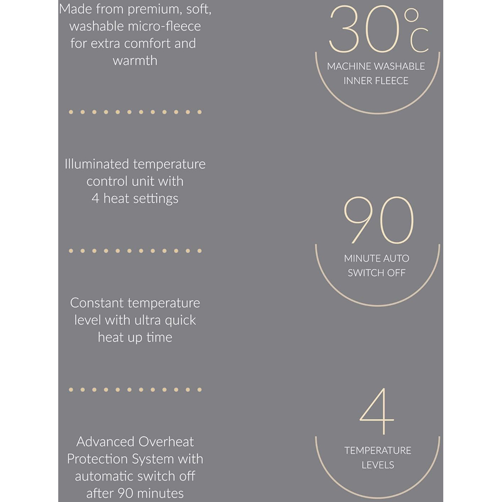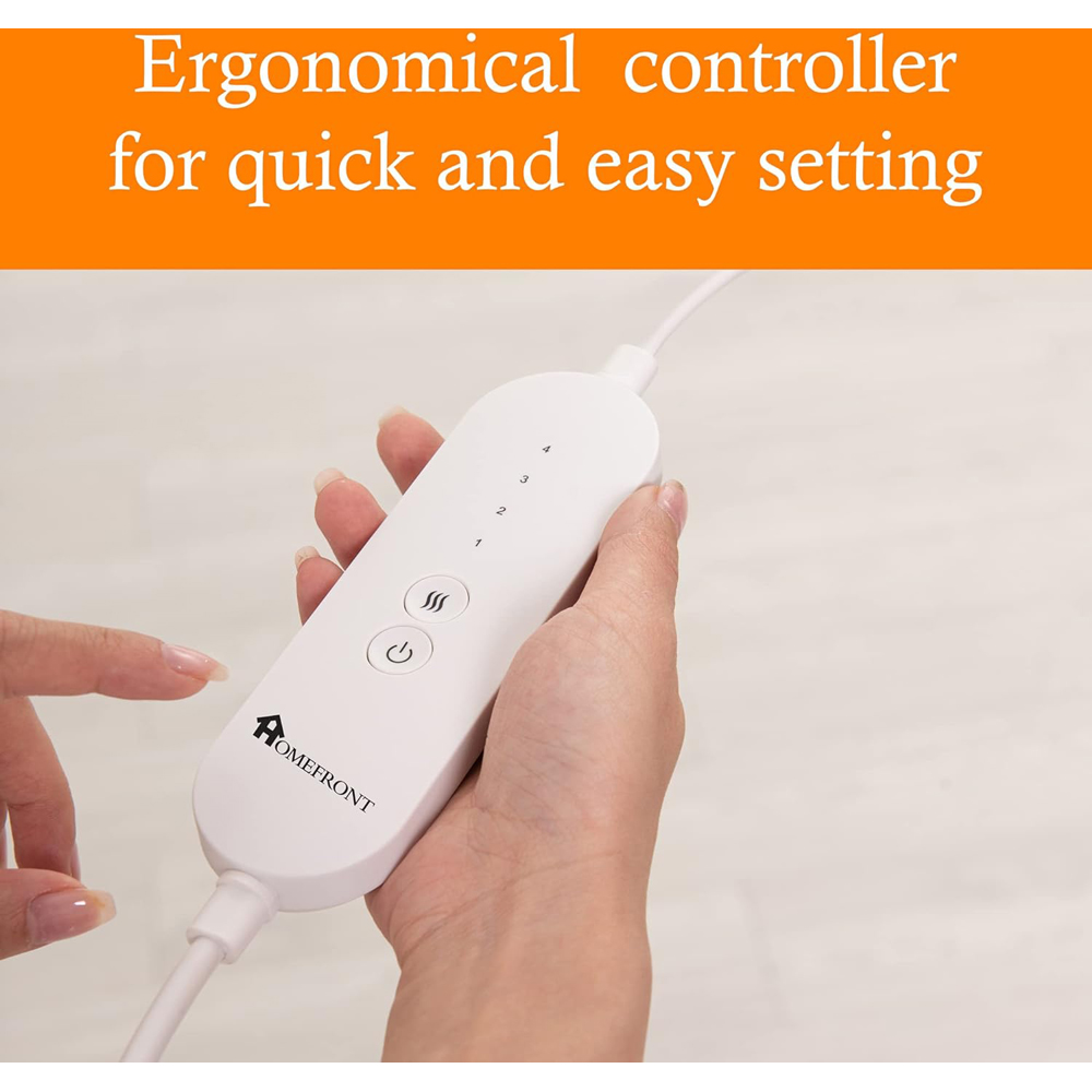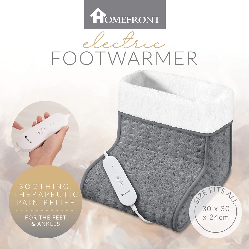 Homefront’s foot warmer is made from luxuriously soft micro-flannel fleece. This makes it super comforting to place your feet into – perfect for those wanting to warm their feet up on a cold evening or to ease pain in their feet and ankles. Find the perfect heat setting for you with four to choose from. The first heat setting heats up to 30 -35°C, the second heat setting heats up to 35-40°C, the third heat setting heats up to 40-45°C and the fourth heat setting heats up to 45-50°C. With an easy-to-use controller, you can switch between heat settings with ease. The controller has LED lights to clearly display which heat setting has been chosen, as well as a power button for your convenience! Heated foot warmers are scientifically proven to help reduce pain by using topical heat therapy. This type of pain relief is recommended to soothe aching feet and ankles and stiff joints. Our foot warmers can also be used to keep you warm and cosy on chilly nights to provide pain relief and comfort. Keep your foot warmer fresh and clean by detaching the controller and placing it in your washing machine at 30 degrees! This heated foot warmer has been designed with your safety in mind. With built-in overheat protection, over-current protection and auto cut-off after 90 minutes, you can use the heat pad with complete peace of mind.