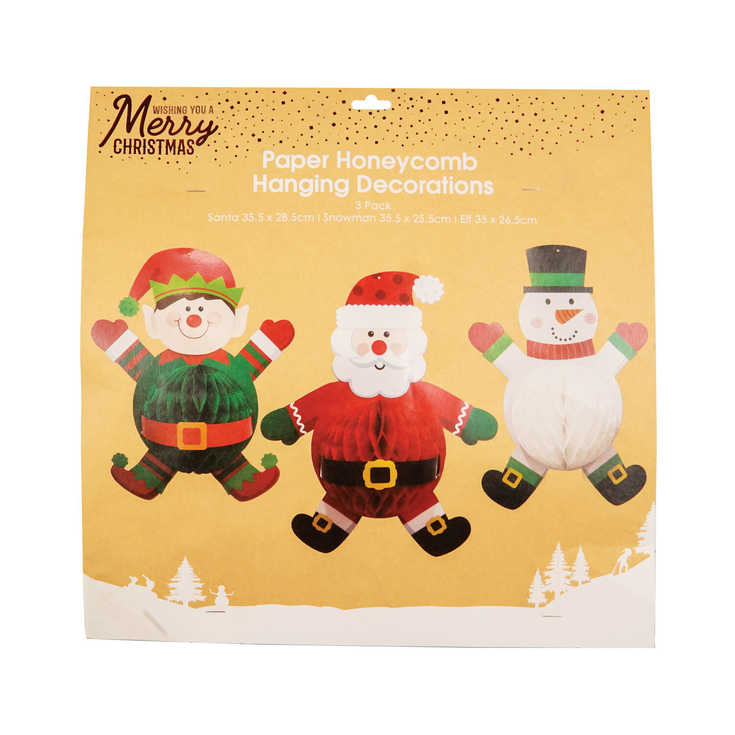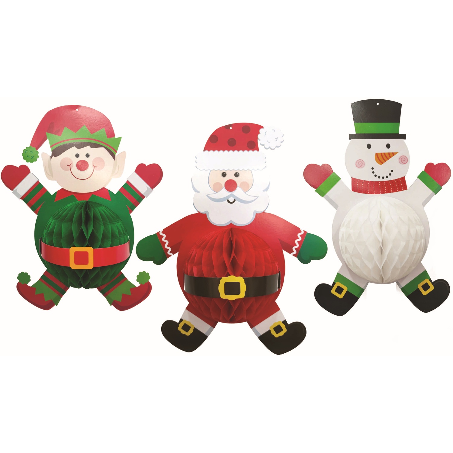 This Paper Honeycomb Hanging Decoration is available in a variety of festive designs: Santa, Snowman, or Elf, making it the perfect home decoration for Christmas.
