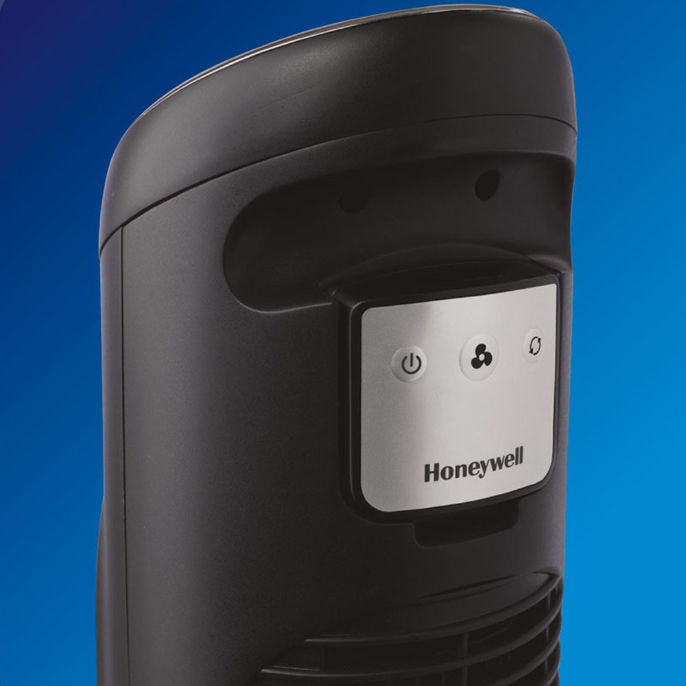 Feel relaxed and refreshed with the Honeywell QuietSet Black Tower Fan 40 inch. The tower fan with eight cooling settings from sleep to power cool performance gives you the ultimate control of its sound and cooling options. The fan can oscillate at 80 degrees, offering whole room cooling with quiet operation, making it suitable for nighttime, especially with light dimming settings. The nighttime dimming feature permits you to select between five light levels for nighttime use. This tower fan has a remote control, which can be stored in the back of the tower unit when not in use. The Honeywell fan also features an auto timer with shut off, which can be set to one, two, four or eight hours. It has a sturdy base and a carrying handle. It's ideal for bedrooms and homes.