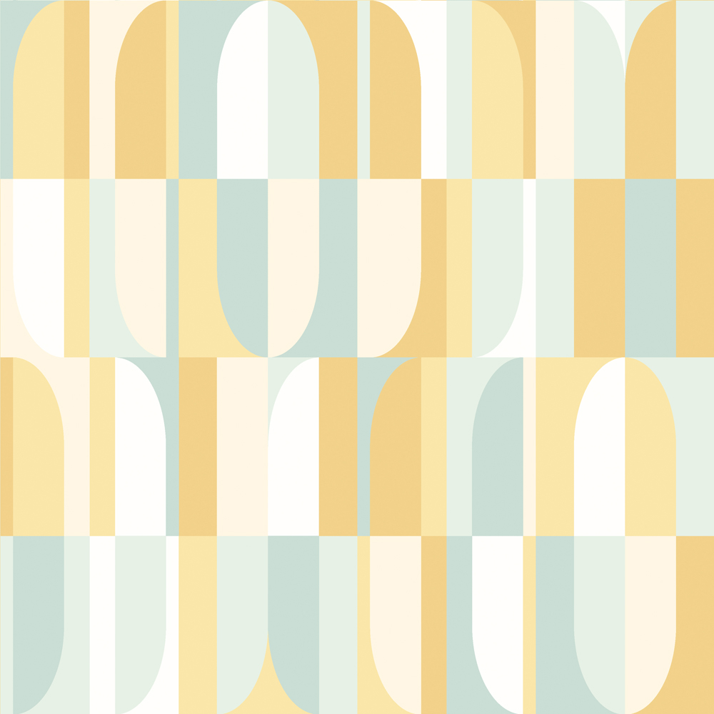 Tall lozenge-shaped blocks mix and match, dancing and mingling throughout the design to create a lively all-over graphic design with a nod to the 1970’s. It is small-scale and easy to use in any interior.