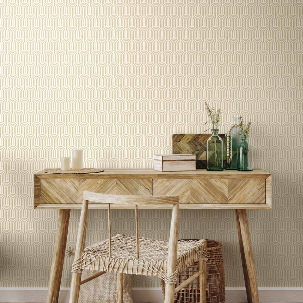 Simple graphic arches repeat across the design in this modern take on an Art Deco-inspired design. The perfect balance of quirky yet contemporary, this design is bound to introduce a joyful lift to any space.