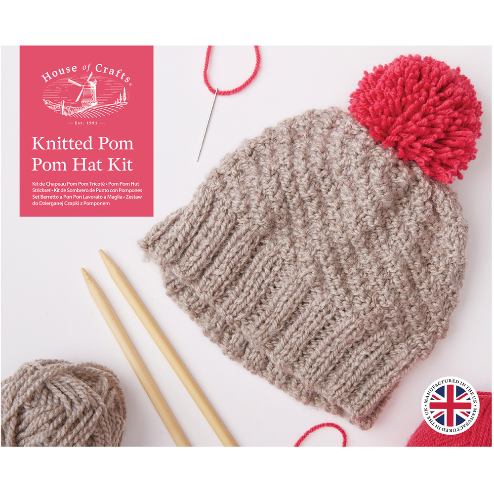 House of Crafts Multicoloured Knitted Pom Pom Hat Craft Kit