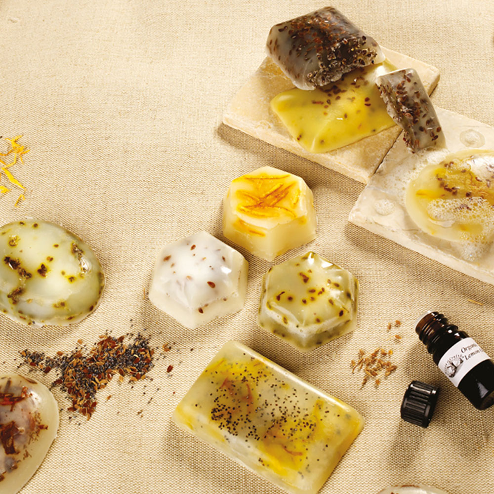 Making your own soap is tremendously rewarding – All manner of natural ingredients can be added to give texture, colour and aroma to your soaps. This organic soap making kit makes a delightful selection of hand crafted soaps.
