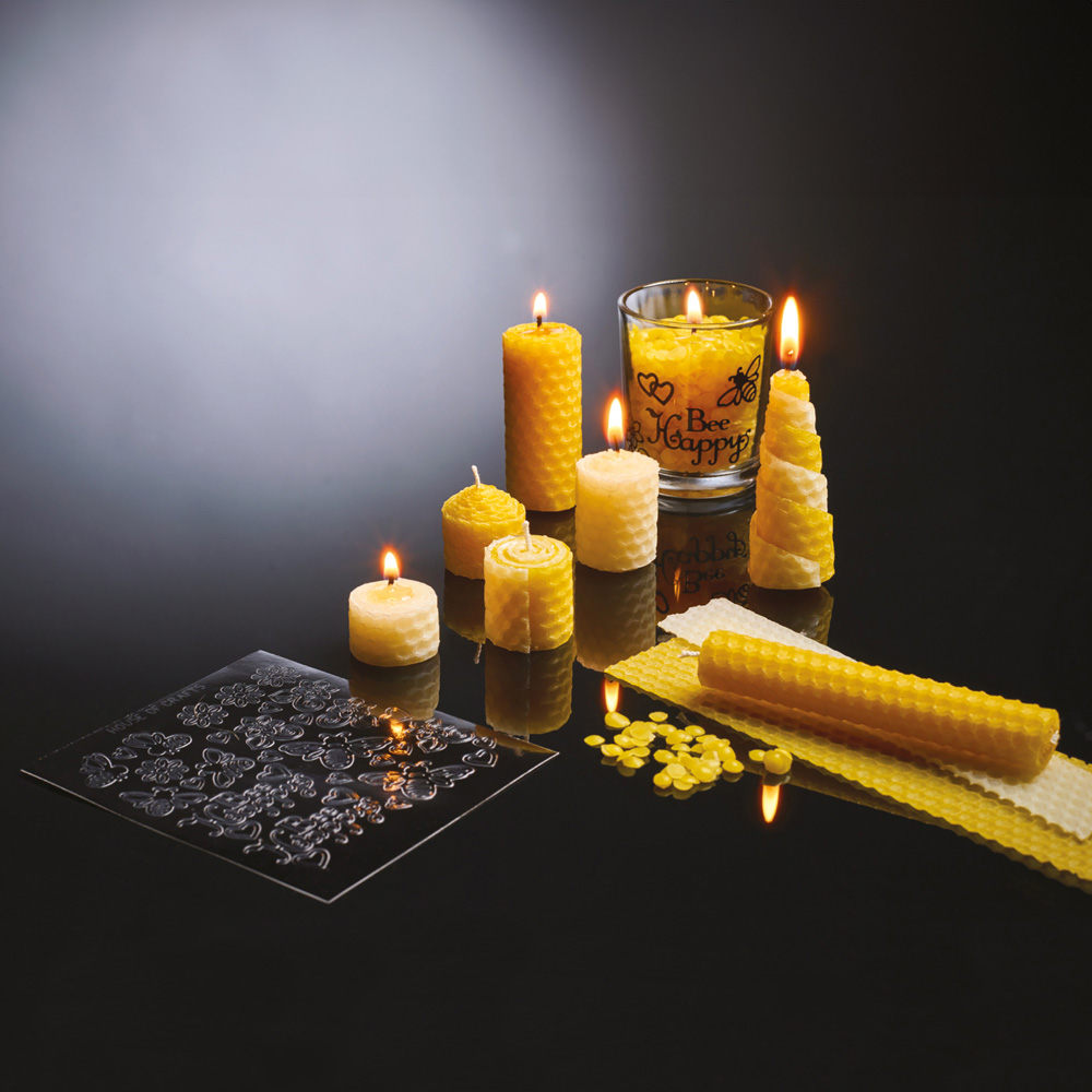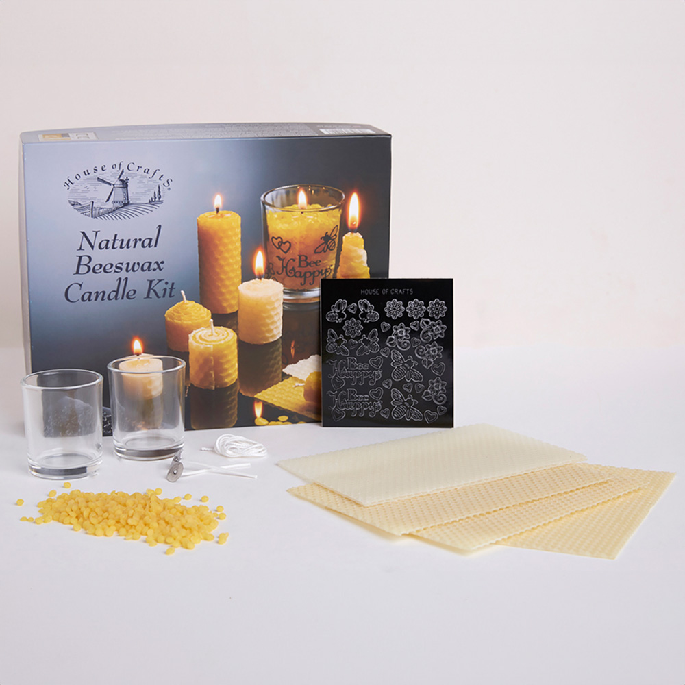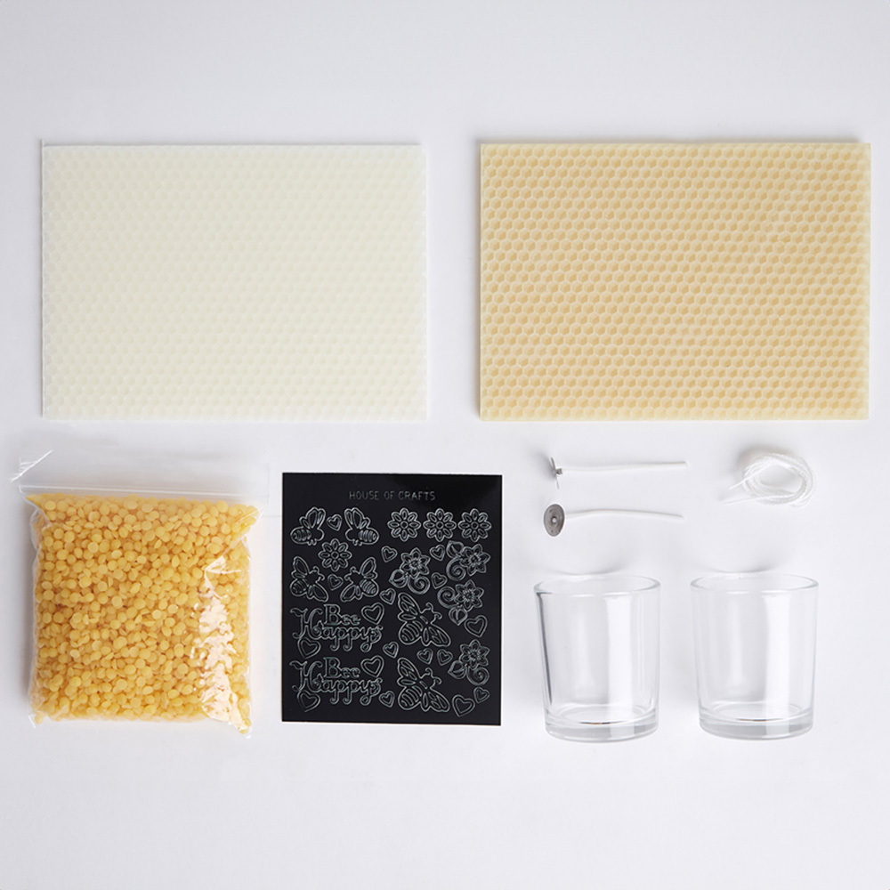 Burning beeswax candles is a natural air purifier. This fabulous kit contains all the materials to create a selection of natural beeswax candles. Two candle glasses are also included to create beeswax container candles using the natural beeswax pellets provided. The candles can be further embellished using the self adhesive decorations within the kit.