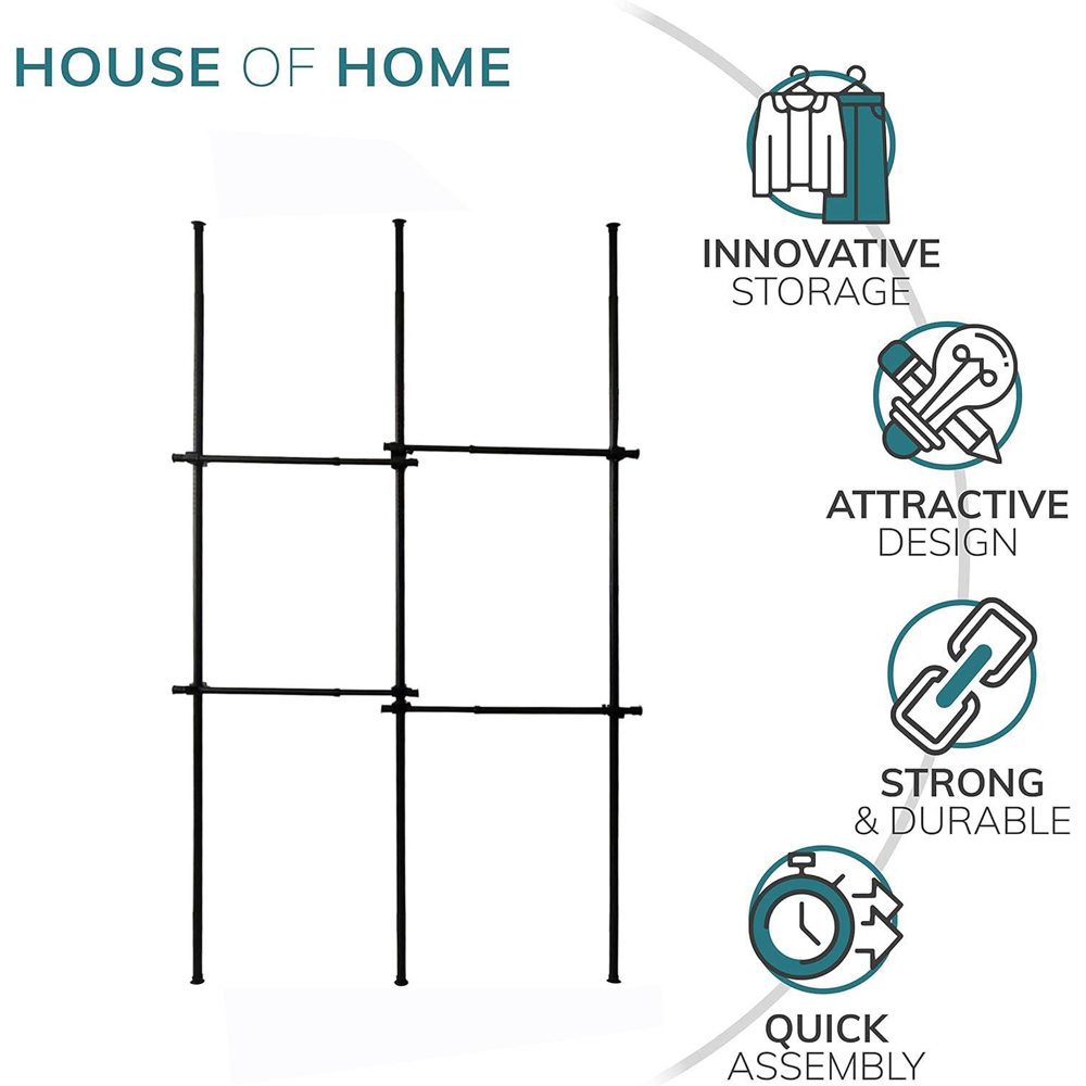 House of Home 2 Tier Double Telescopic Hanging Rail Adjustable Black Wardrobe