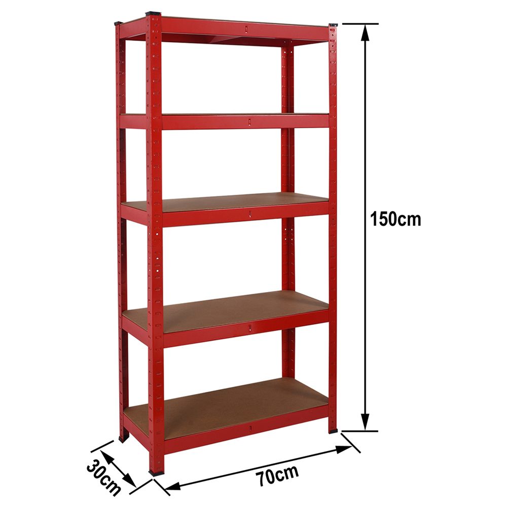 Keep your working area tidy with this House of Home 5-Tier Red Heavy Duty Shelf. This 5-tier racking is ideal for garages, warehouses, workshops and more. The frame has been manufactured using heavy-duty steel and finished in a red powder coating with MDF shelving. With these heavy-duty steel frames, you can simply create a sturdy shelving unit. Apart from this, it features adjustable shelves that permit you to set it as per your requirements. Max loading capacity: 1325 kg – (265kg per shelf). Dimensions: 150cm height x 70cm width x 30cm depth.