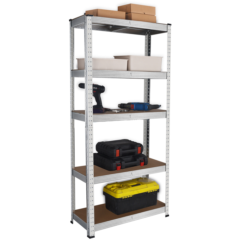 Keep your working area tidy with this House of Home 5-Tier Silver Heavy Duty Shelf. This 5-tier racking is ideal for garages, warehouses, workshops and more. The frame has been manufactured using heavy-duty galvanised steel with MDF shelving. With these heavy-duty steel frames, you can simply create a sturdy shelving unit. Apart from this, it features adjustable shelves that permit you to set it as per your requirements. Max loading capacity: 1325 kg – (265kg per shelf). Dimensions: 150cm height x 70cm width x 30cm depth.