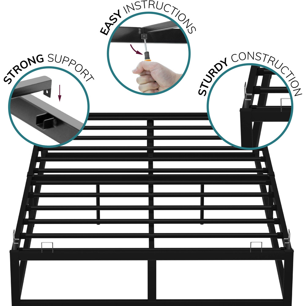 Discover the ultimate sanctuary for rest and rejuvenation with this House Of Home King Platform Metal Bed Frame. This modern and minimalist bed frame is designed to complement any interior style, providing a sleek aesthetic that elevates your bedroom. Featuring a low platform height of 25cm, this extra-strong king bed frame offers easy accessibility and a streamlined appearance. Ideal for a king mattress, it seamlessly fits into your bedroom, creating a contemporary look. Built with durability in mind, this extra-strong king bed frame boasts heavy-duty construction with space for under-bed storage. The additional support ensures a stable and long-lasting foundation for your mattress, combining functionality with a clean design. Sleep with peace of mind, knowing that this bed frame can support up to 240kg. It's an ideal choice for individuals seeking a reliable and extra-strong sleeping solution for their bedroom, spare room, or guest bedroom furniture. The easy assembly process is complemented by clear instructions and included hardware, making it a convenient addition to your bedroom.