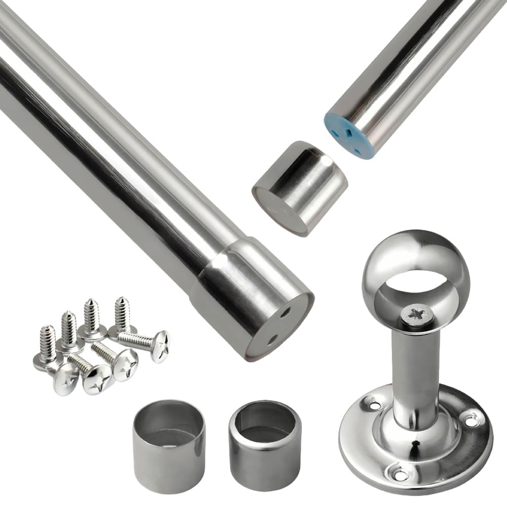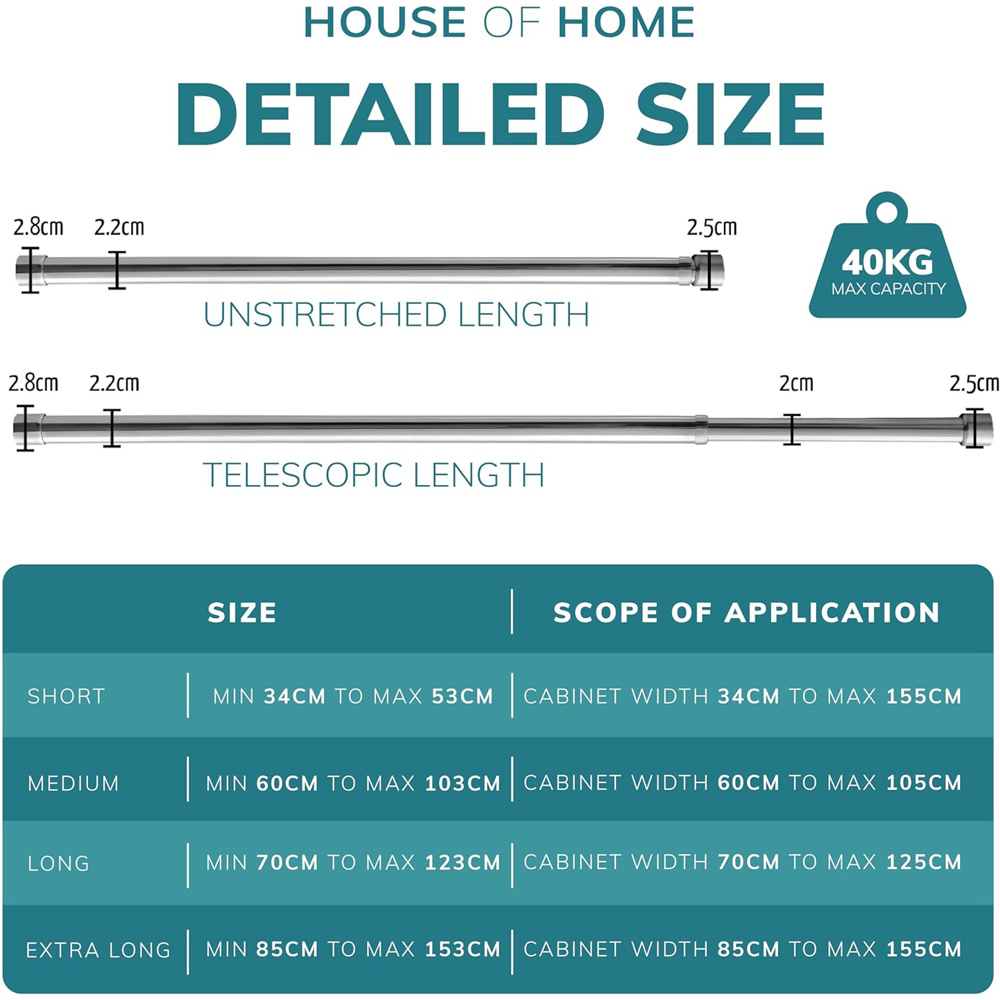 Introducing the Extendable Wardrobe Rail, the ultimate solution for streamlined home organization. This steel wardrobe rail is designed with precision, featuring Perfect Grip Technology with two heavy-duty brackets and soft rubber grip ends to ensure a secure fit, preventing any wardrobe mishaps. Built to last, the extendable poles are manufactured with an extra thick metal sheet, capable of holding up to an impressive 40kg. Say goodbye to rust worries, as high-grade stainless steel keeps the rail smooth and shiny for the long haul. Installation is a breeze with two end brackets and seven screws, allowing for quick setup, and the extendable design adapts effortlessly to spaces between 60-103cm. This space-saving wonder is not only functional but also versatile, fitting seamlessly into closets, bathrooms, balconies, kitchens, and windows. Whether for clothes, curtains, or utensils, Perfect Grip is the key to a clutter-free, organized living space where style meets functionality.