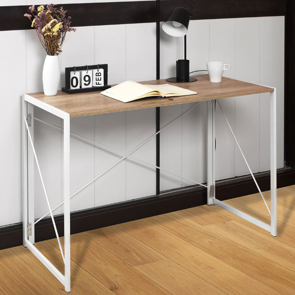 Add an elegant and functional touch to your interior space with the House of Home White Multifunction Folding Desk. This desk features a smooth top for placing your laptop while the open space underneath makes it ideal for relaxed working. This compact, industrial style desk features a sleek foldable design and is ideal for smaller spaces. You can simply unclip the legs and fold the top flat for easy, space-saving storage. This solid desk has a sturdy and robust structure for durability and longevity.