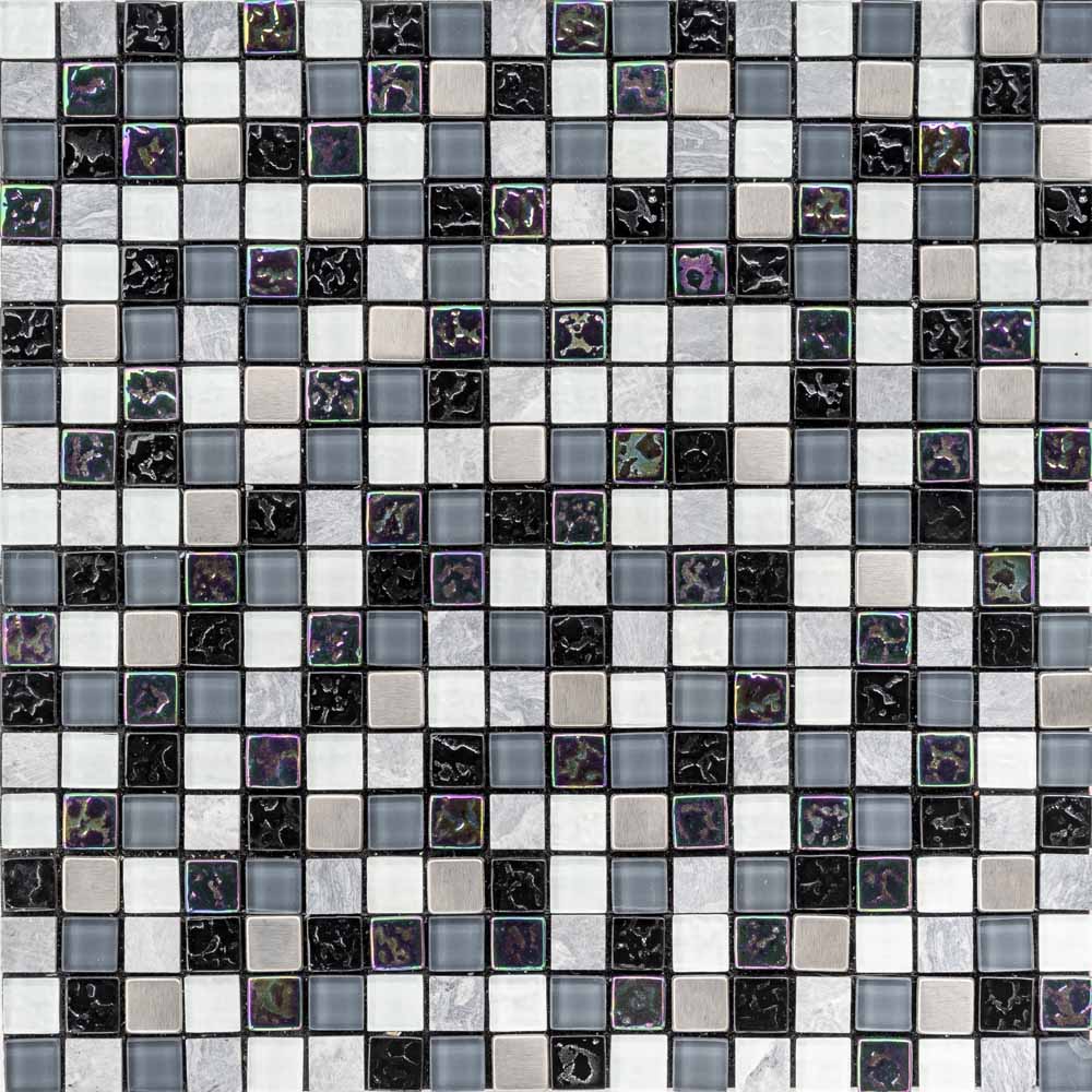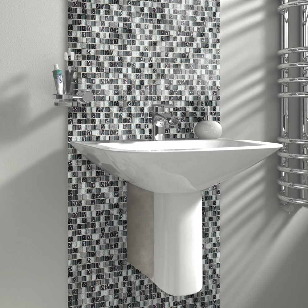 Upcycle anywhere in your home with these self-adhesive mosaic tiles. The ultra modern design teams grey natural stone with plain grey, textured clear and petrol-effect glass pieces, finished off with a scattering of silver-effect pieces. The self-adhesive mosaic tiles are easy to use, simply peel and stick! The upcycling possibilities are endless; tile over tiles, do up coffee tables, fireplaces, mirrors, or even photo frames! Each sheet must be grouted to keep the individual pieces in position. Always read the packaging for full installation instructions and product warranty. Not suitable for use in area with continual water penetration i.e. a shower.