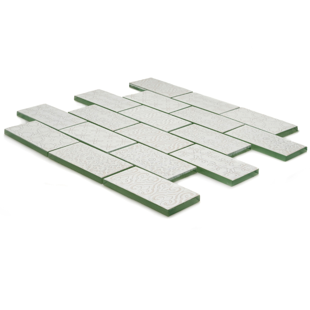 Vintage Fleur De Lys features a subtle embossed floral pattern with a handmade effect edge, creating a wonderfully romantic and rustic look to any tiled area.