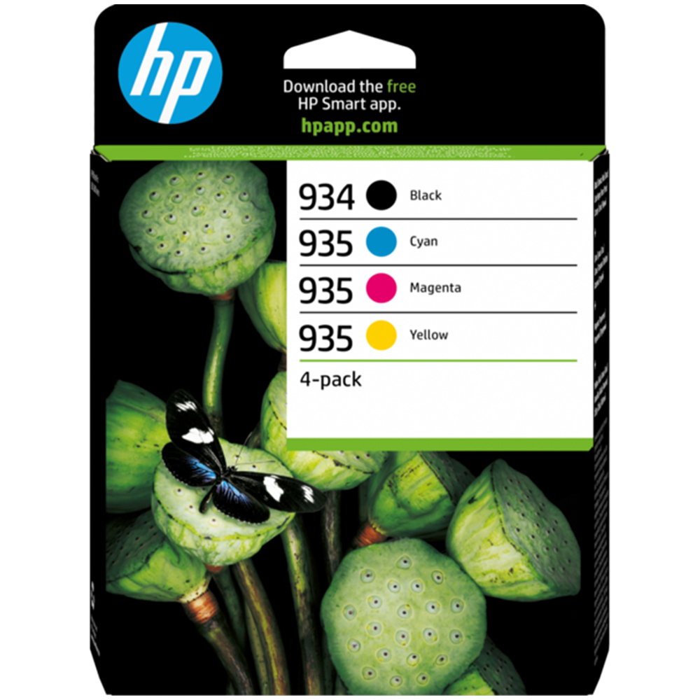 Enhance your printing experience with the HP 934 and 935 CMYK Ink Cartridge 4 Pack. With a set of cyan, magenta, yellow, and black inks in one, it ensures professional-quality vibrant colour documents. Original HP ink cartridges provide impressive reliability for dependable performance and durable results. With individual inks and high-yield cartridge options, it makes it easy to replace only the colours you need.