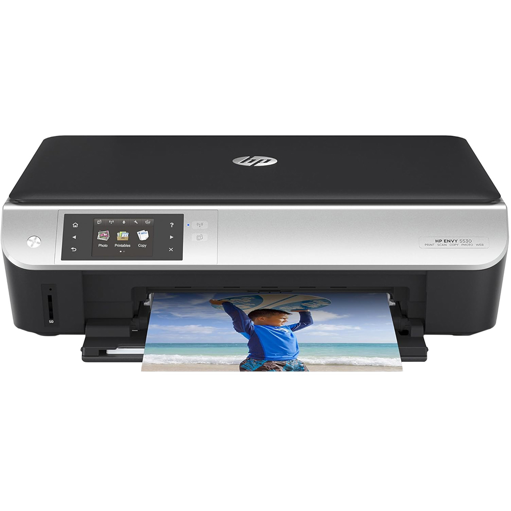 Enhance your personal printing setup in a budget with HP Envy 5530 Multifunction Inkjet Wireless Refurbished Printer. Ideal for home and office printing, this is a great option for everyday use. This printer's features include: Print, copy, scan, photo & web functions. Print Technology: HP Thermal Inkjet. First page out (ready) Black: As fast as 19 sec. Display: 6.74 cm (2.65") CGD (colour graphics), touchscreen. Wireless capability: Yes, built-in Wi-Fi 802.11b/g/n. Connectivity, standard: 1 USB 2.0; 1 Wi-Fi 802.11b/g/n. Multitasking supported: Yes. Duplex printing: Automatic (standard).