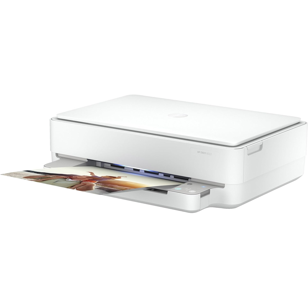 Enhance your personal printing setup in a budget with HP Envy 6022 Multifunction Inkjet Wireless Refurbished Printer. Ideal for home and office printing, this is a great option for everyday use. This printer's features include: Print, copy, scan and photo functions. Print Technology: HP Thermal Inkjet. Print speed black (ISO, A4): Up to 10 ppm. First page out (ready): Black: As fast as 18 sec. Wireless capability: Yes, built-in Wi-Fi 802.11b/g/n. Mobile printing capability: Apple AirPrint; Chrome OS; HP Smart app; Mopria-certified. Connectivity, standard: 1 Hi-Speed USB 2.0; 1 Wi-Fi 802.11ac (dual band).