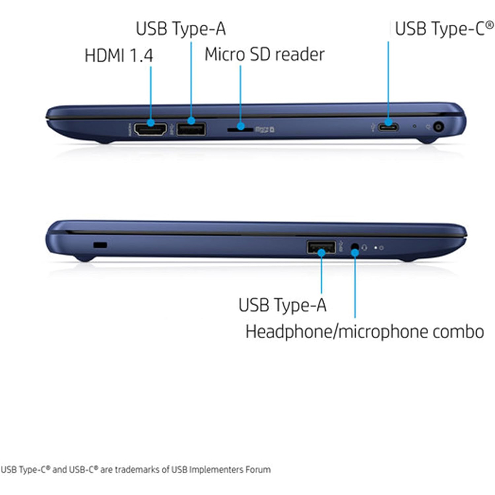 Compact yet capable, the HP Intel Stream 11 4 GB RAM 64GB Storage Laptop Blue with Windows 11 strikes the perfect balance between functionality and portability. Its lightweight and portable design makes it perfect for on-the-go tasks. Equipped with all essential ports for your convenience, it ensures seamless connectivity. The USB-C port can fast-charge your smartphone, while the standard USB ports accommodate mouse and keyboard needs. The HDMI port allows you to stream movies and other content on a non-smart TV with ease. Powered by an Intel Celeron processor, this laptop delivers reliable and fast performance.