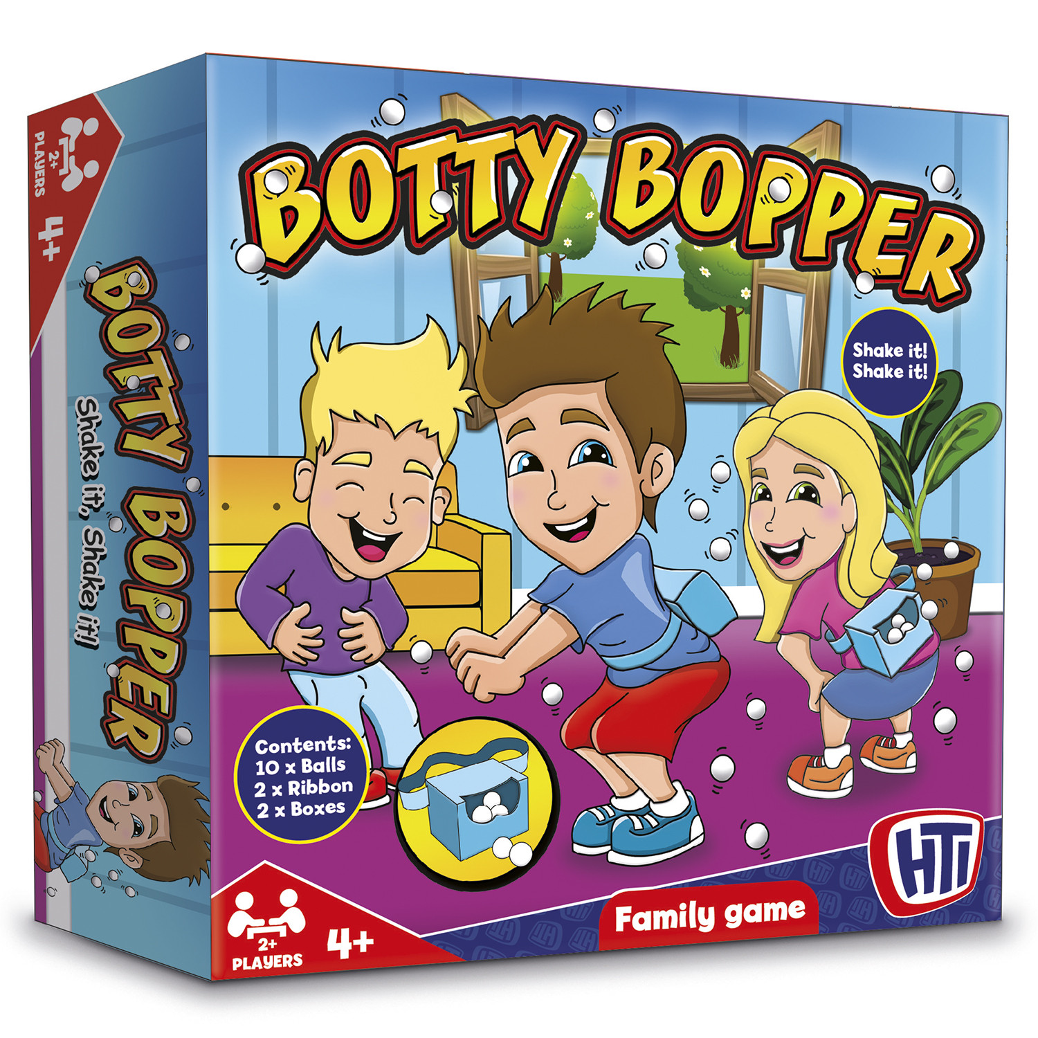 Jig and bop your botty with the entertaining and hilarious Botty Bopper game! Fill your box with balls and strap to your waist for Booty Boppin' fun. See who can empty their box first and be crowned the Booty Bopper champion!