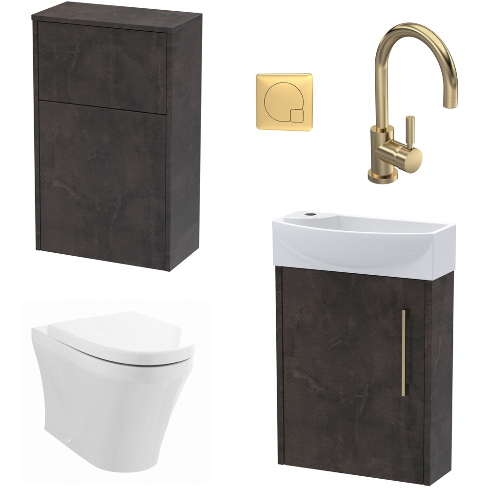 Transform bathroom spaces with a compact wall-hung WC and matching tap set in a modern metallic slate finish. It is perfect for small bathrooms looking for contemporary style and clever use of space. Enjoy the convenience of a soft-close seat and the seamless look that comes from a coordinated design, making this wall-hung metallic slate toilet with soft-close seat an ideal choice for UK homes seeking both function and flair.