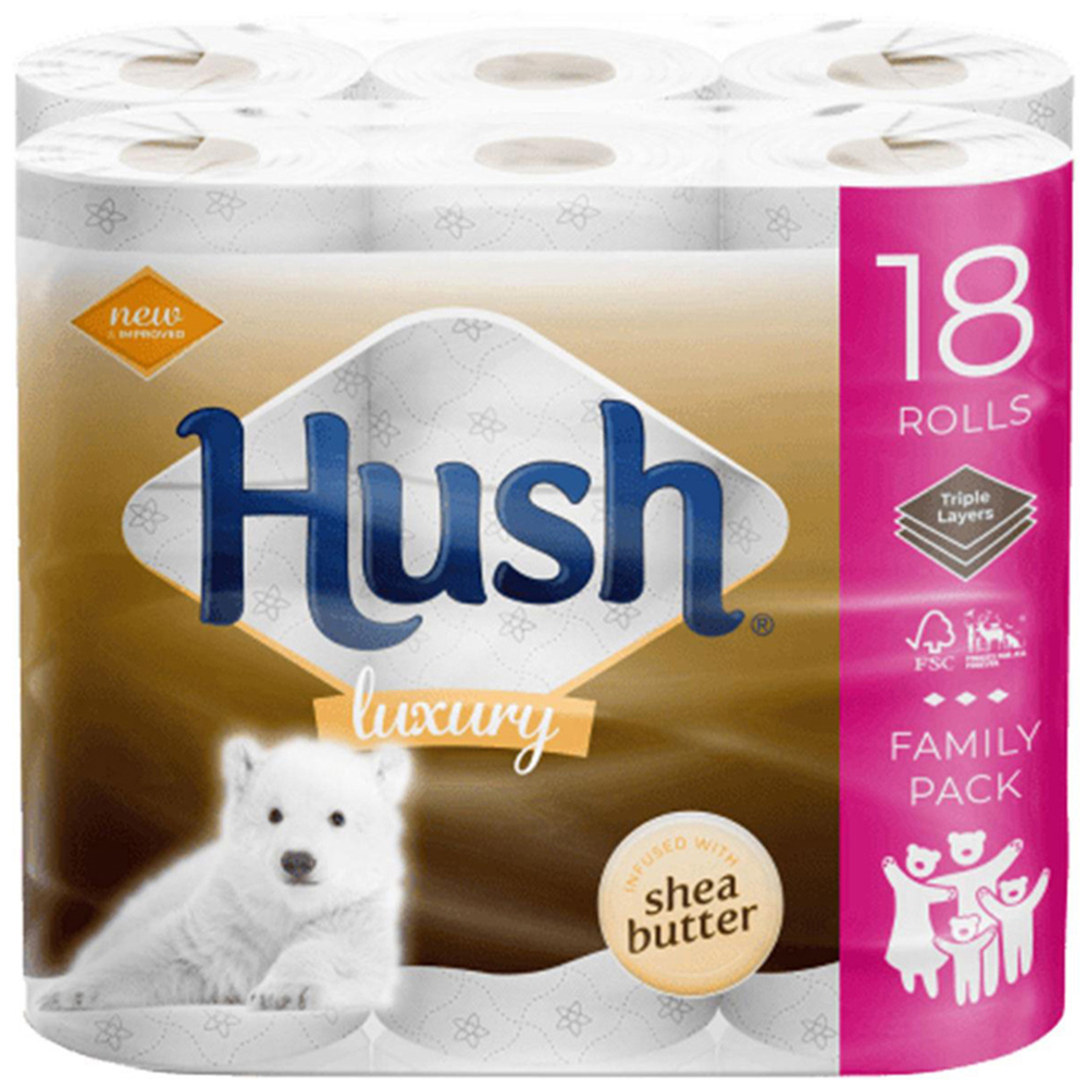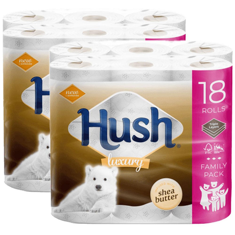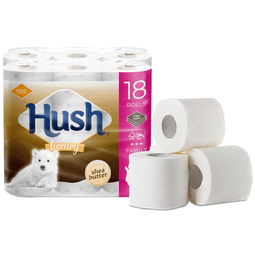 Hush Luxury Shea Butter 3 Ply Scented Core Bathroom Tissues, 36 Rolls Hush tissue papers are designed to be used anytime where cleanliness and comfort are a priority. It is often the simple things that make life a whole lot easier. In our everyday lives, comfort and ease combined with responsible choices can make a big difference in quality of life. 3-PLY TISSUE PAPERS: Hygienic, safe, soft and disposable, Hush 3-ply tissue papers gently pamper your skin. They bring comfort not only at home but also wherever you go. You will love the extra comfort & clean wipe of Hush Luxury 3-ply super-soft toilet tissue. COMFORT & EASE: Hush tissue papers are designed to be used anytime where cleanliness and comfort are a priority. It is often the simple things that make life a whole lot easier. In our everyday lives, comfort and ease combined. NATURAL FIBRE: Hush premium toilet rolls are made using natural fibre that is soft and absorbent. They come with the added advantage of being able to dissolve and disintegrate faster than an average toilet paper and roll flush away easily. TOUCH OF COTTON: Created with micro-impressions, quilted and ultra-soft to the touch yet absorbent and strong, with a touch of cotton, for the softness your skin deserves. Fresh wipes with your everyday toilet tissue to feel cleaner and fresher than ever before.
