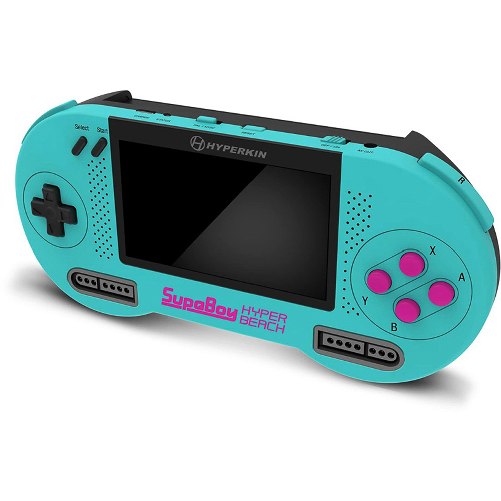 Dive into retro gaming on the go with the SupaBoy Hyper Beach Limited Edition by Hyperkin. This handheld console is designed for true Super NES and Super Famicom enthusiasts, offering compatibility with original cartridges and more.