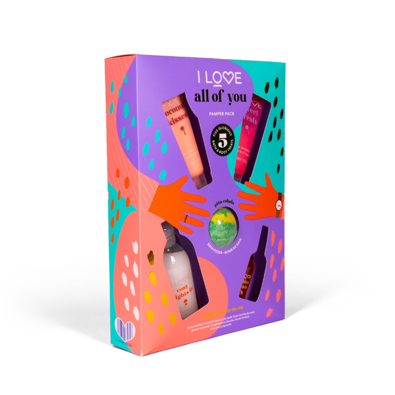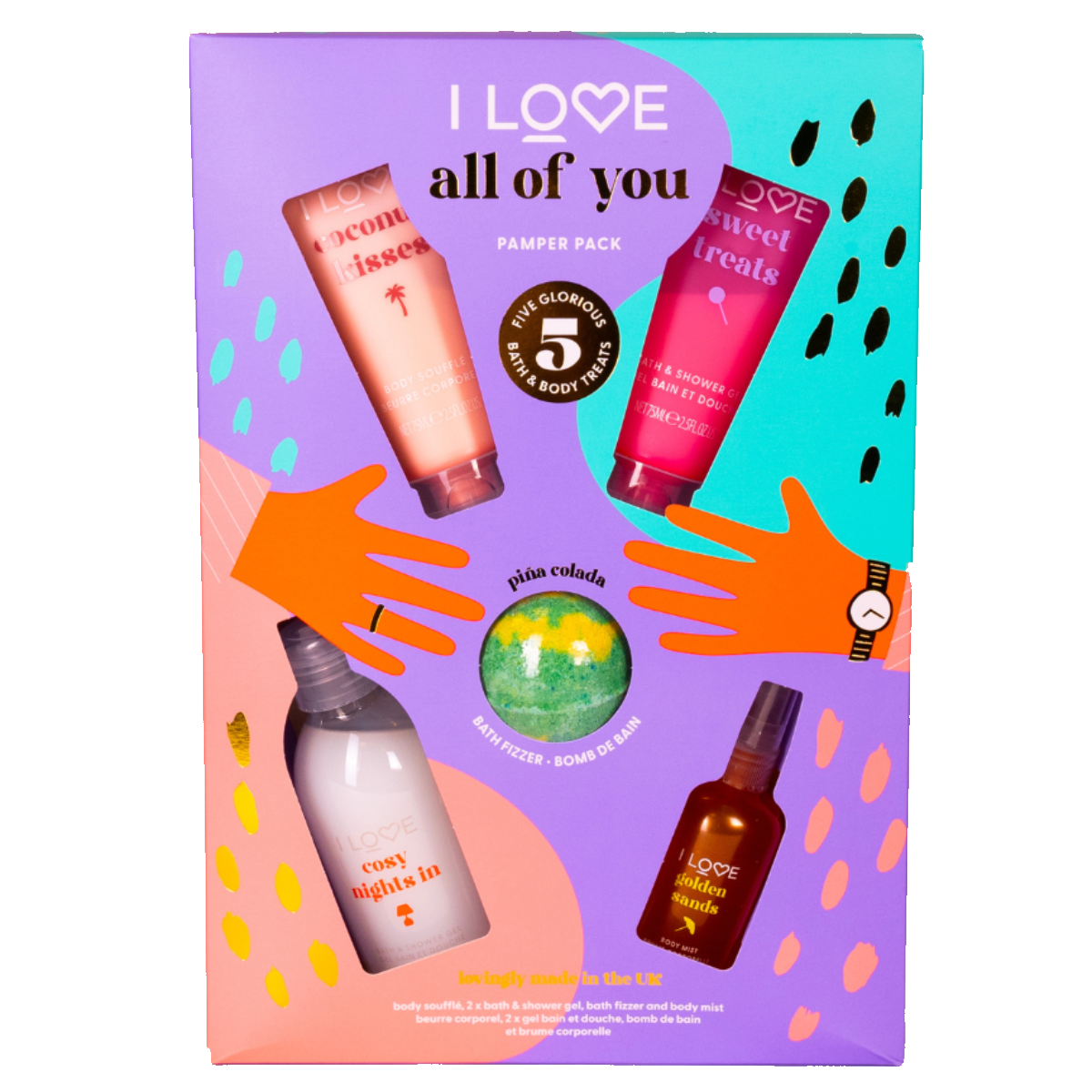 Pamper yourself to get that at-home spa experience. The All of You Pamper Pack has you covered, from running the bath to getting into bed for a good night's sleep. The Bubble bath and a specially formulated bath fizzer set you up for a blissful bath, you lather up with the cleansing shower gel to wash away a day of work. You nourish your body with the moisturising body souffle and spray some of our cheeky body mist afterwards for the perfect finish.